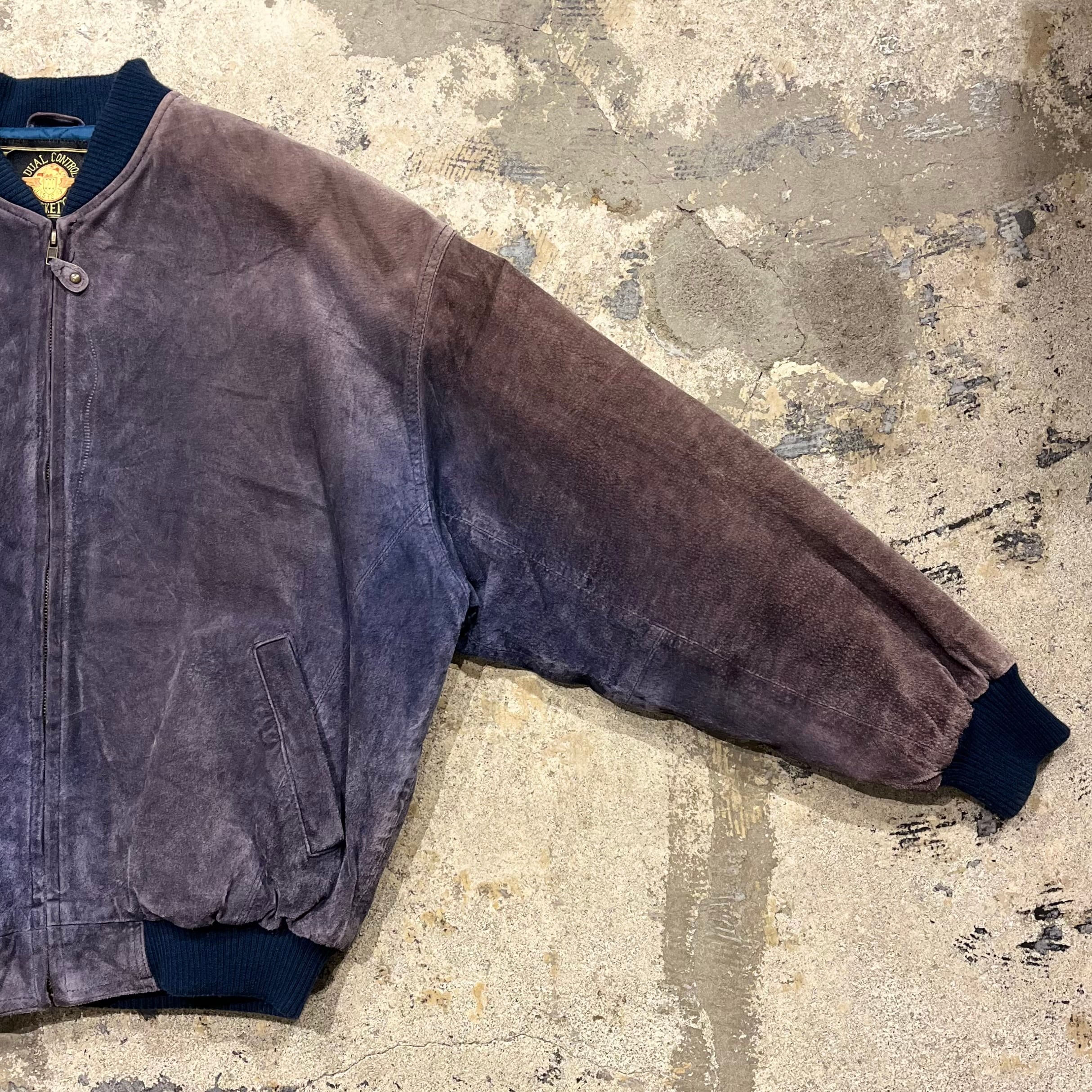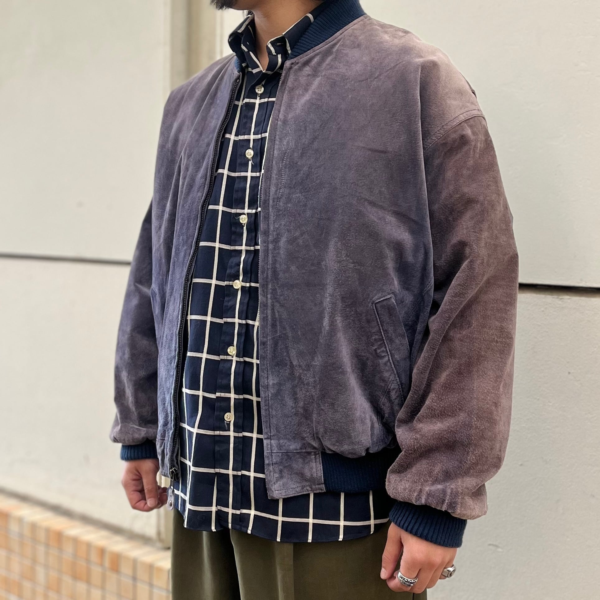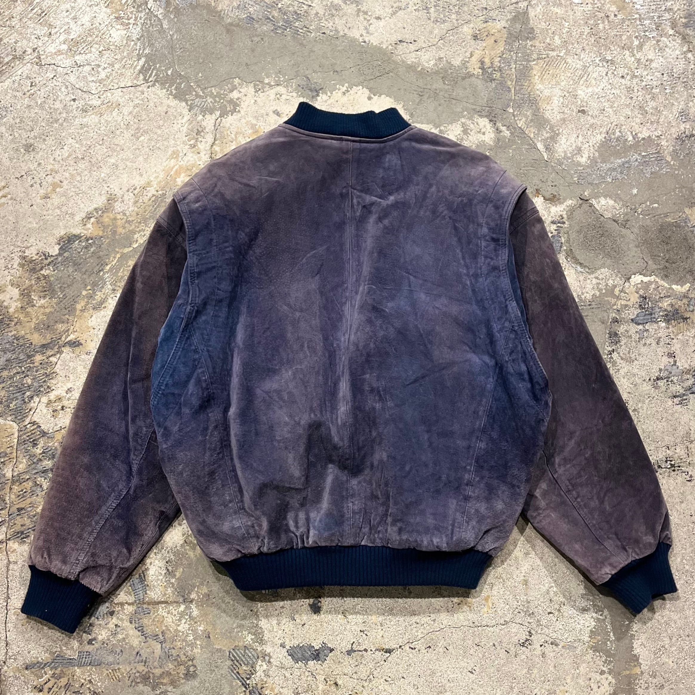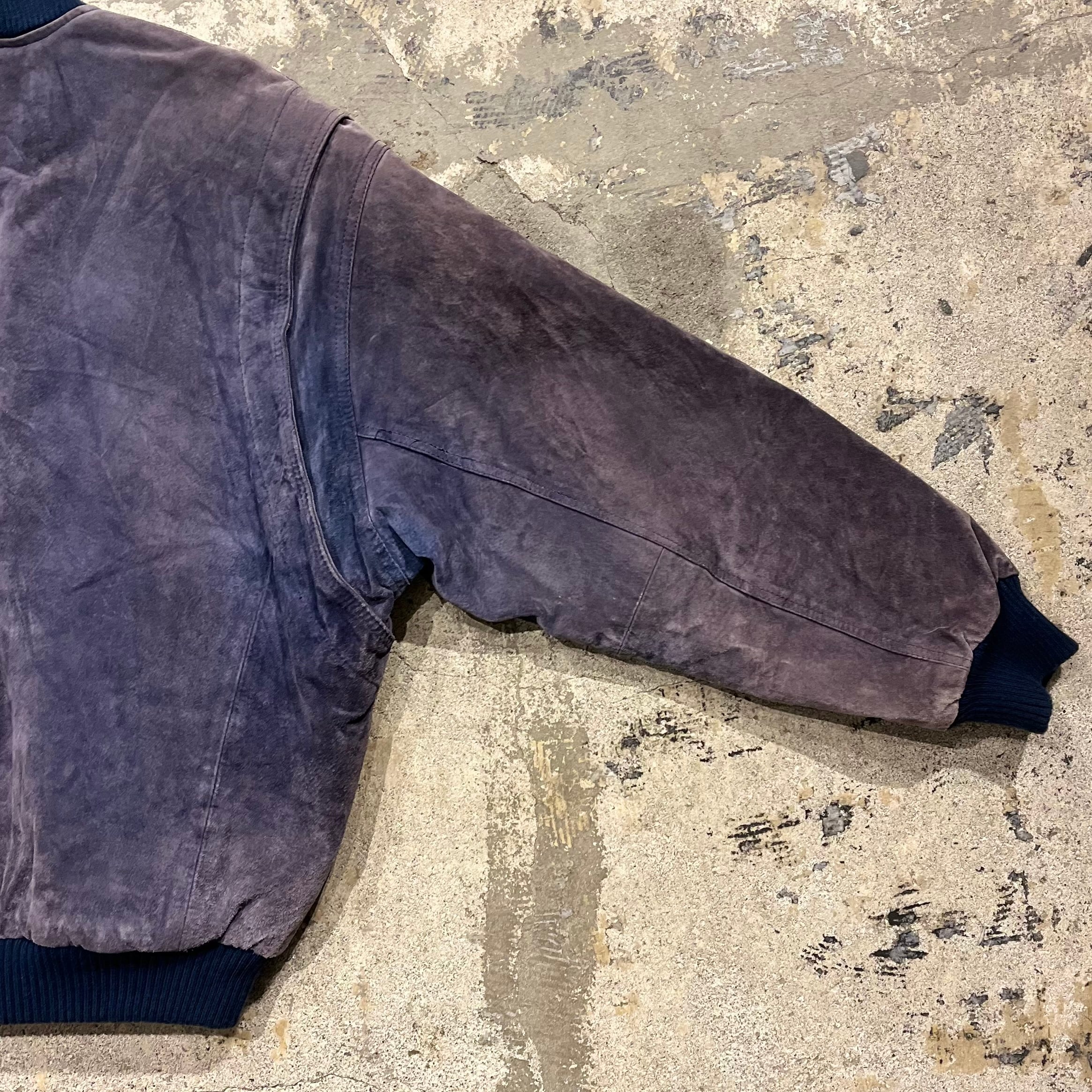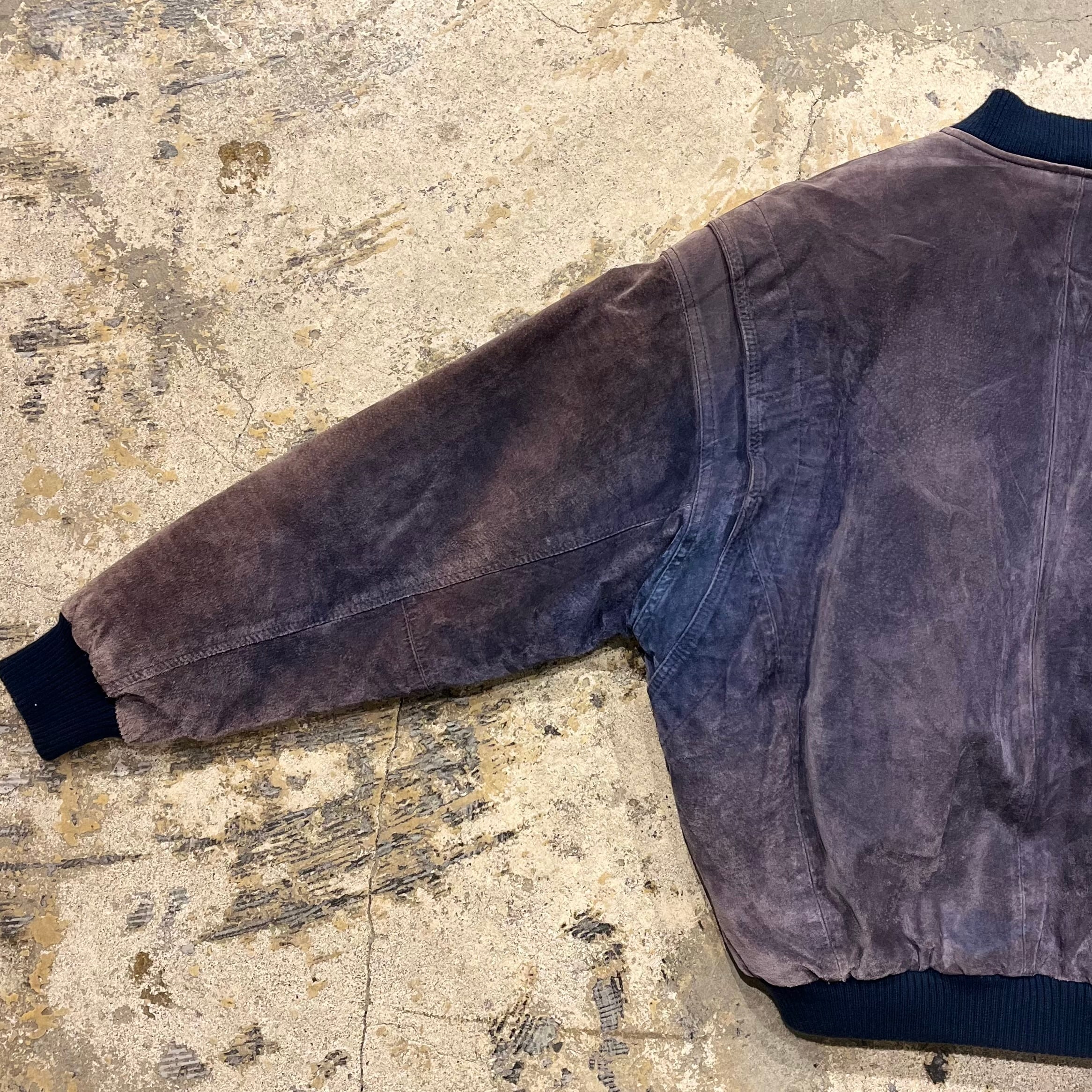 【鬼フェード】90's~ Pig Leather Bomber Type Leather Jacket "茄子紺レザー!?"