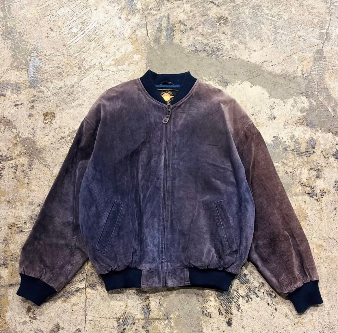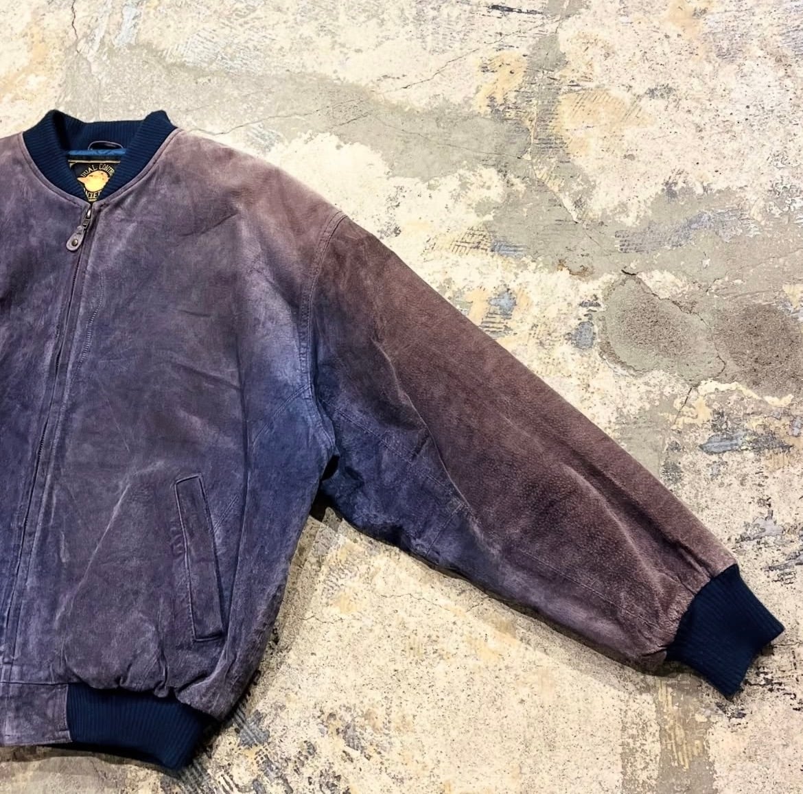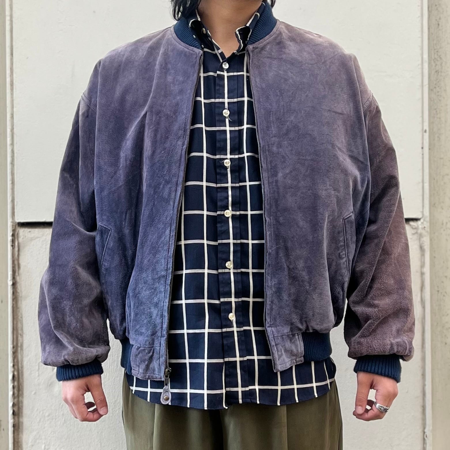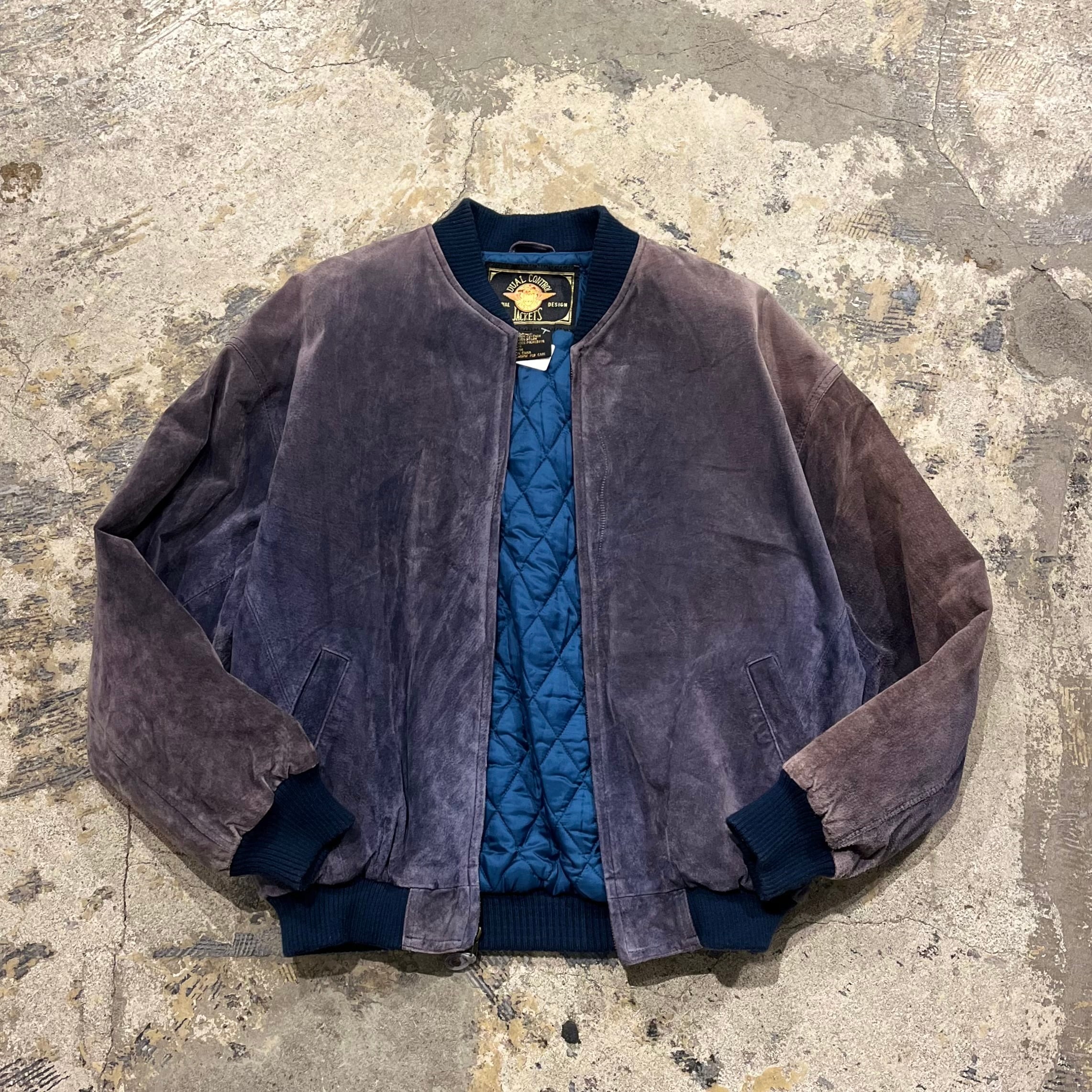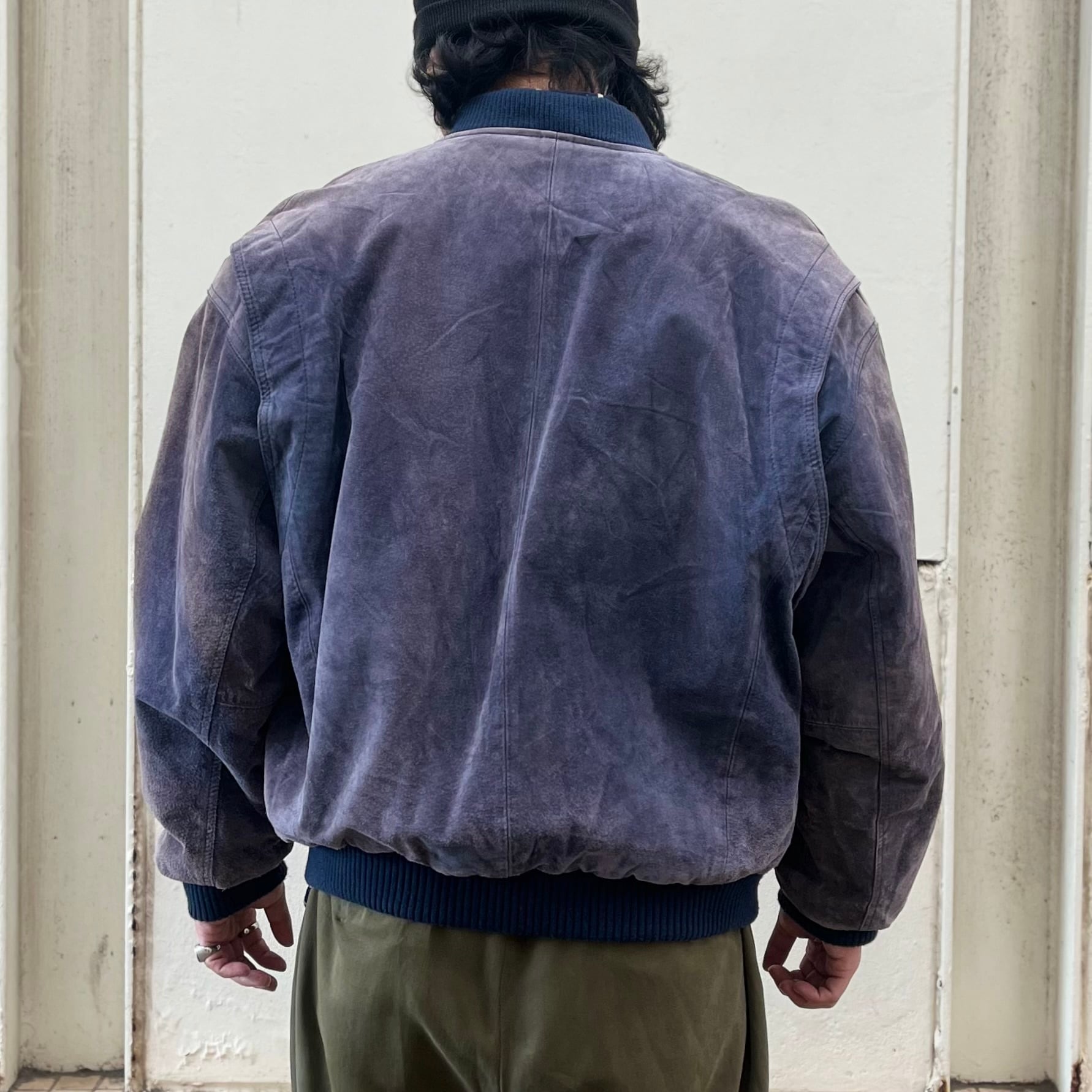 【鬼フェード】90's~ Pig Leather Bomber Type Leather Jacket "茄子紺レザー!?"