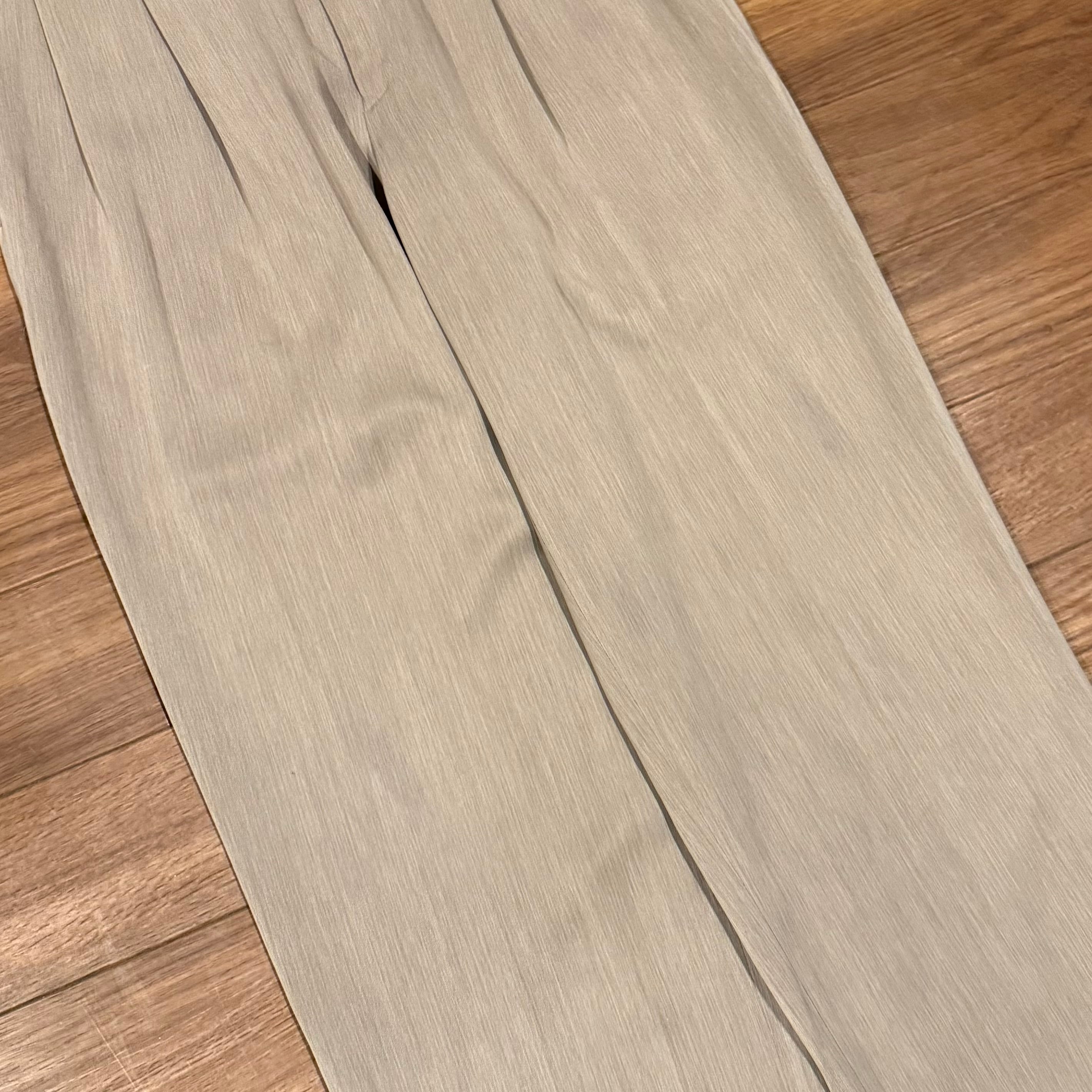 ベージュカラーのワイドスラックス