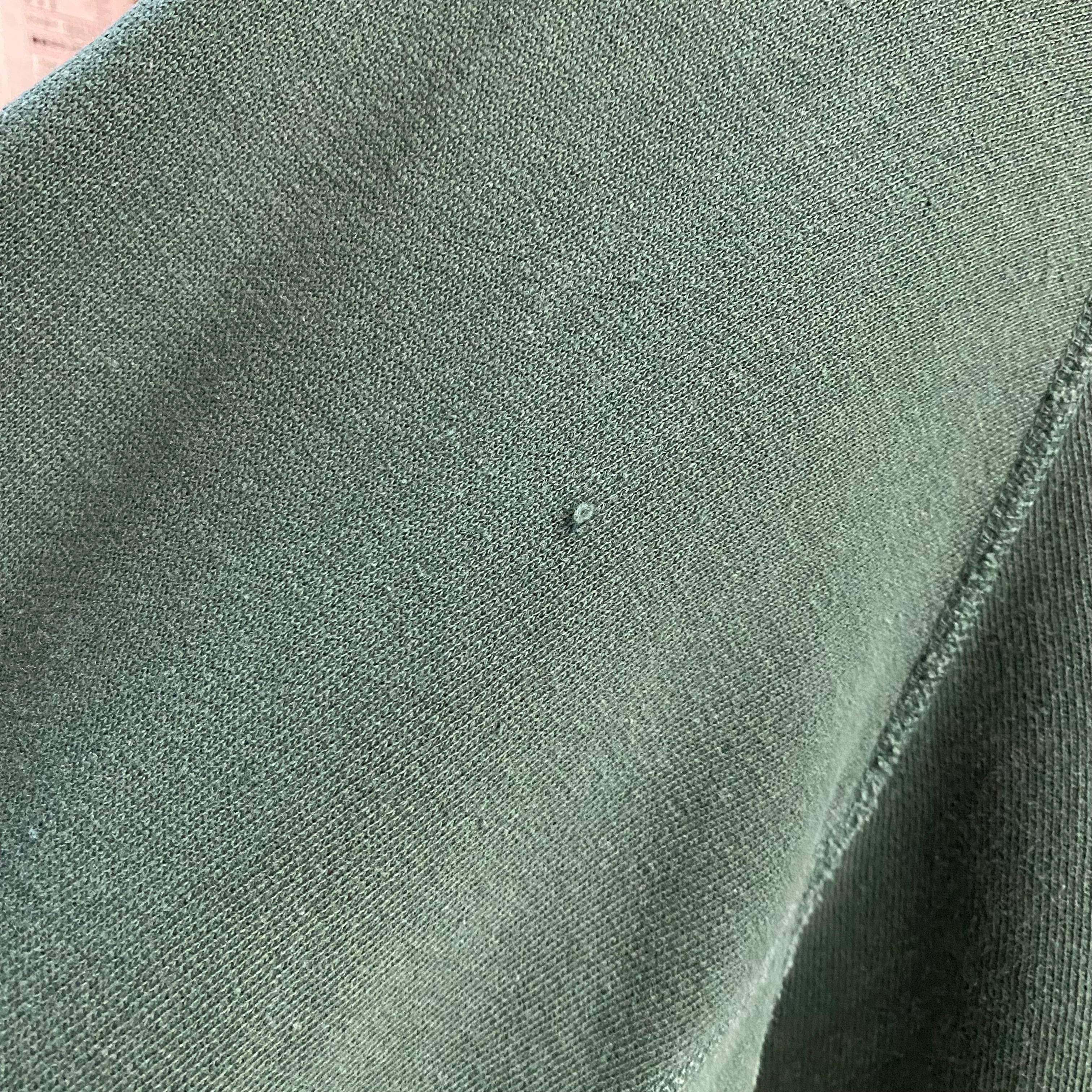 古いスウェットにありがちなタグ欠損ですがしっかりコットン100で間違いないかと思います。今後のフェードに期待大です。