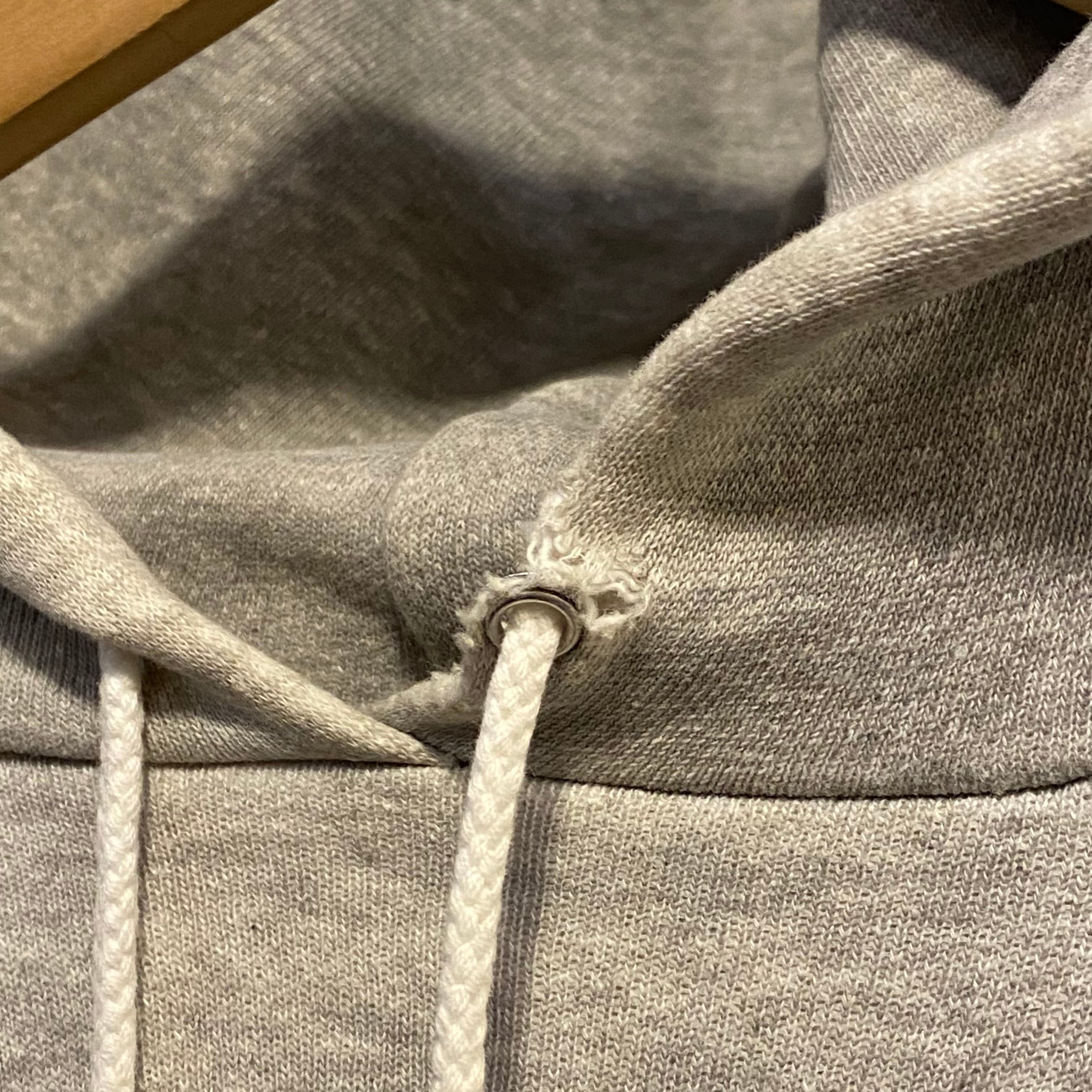フード部分のハトメ周りにダメージ有り。