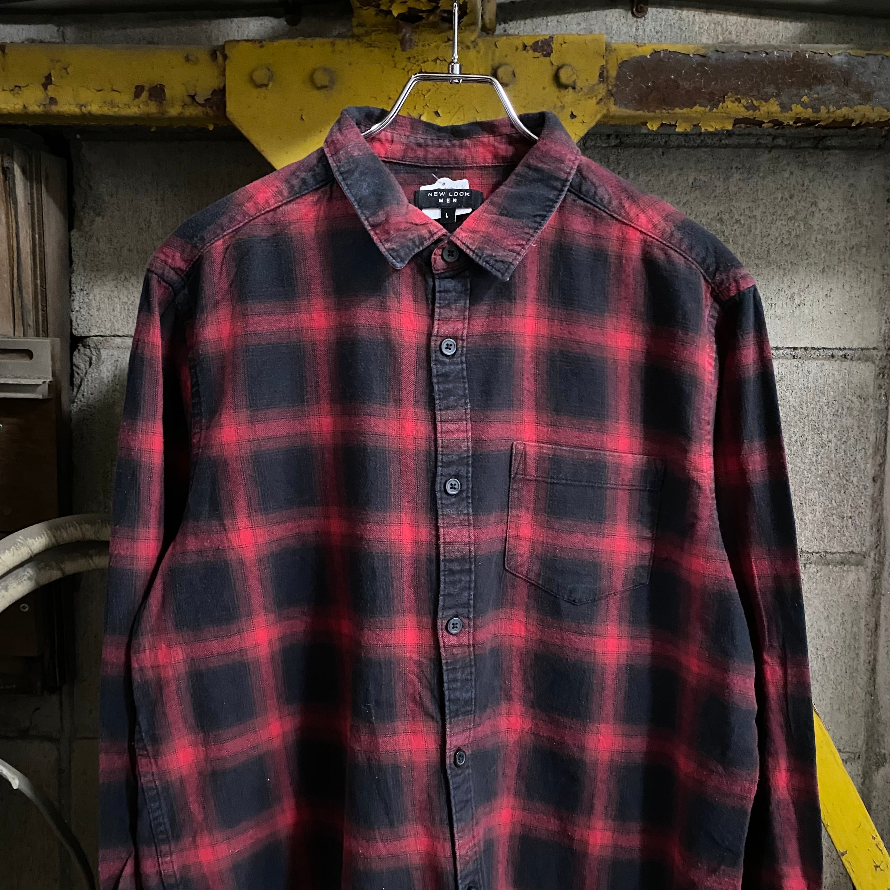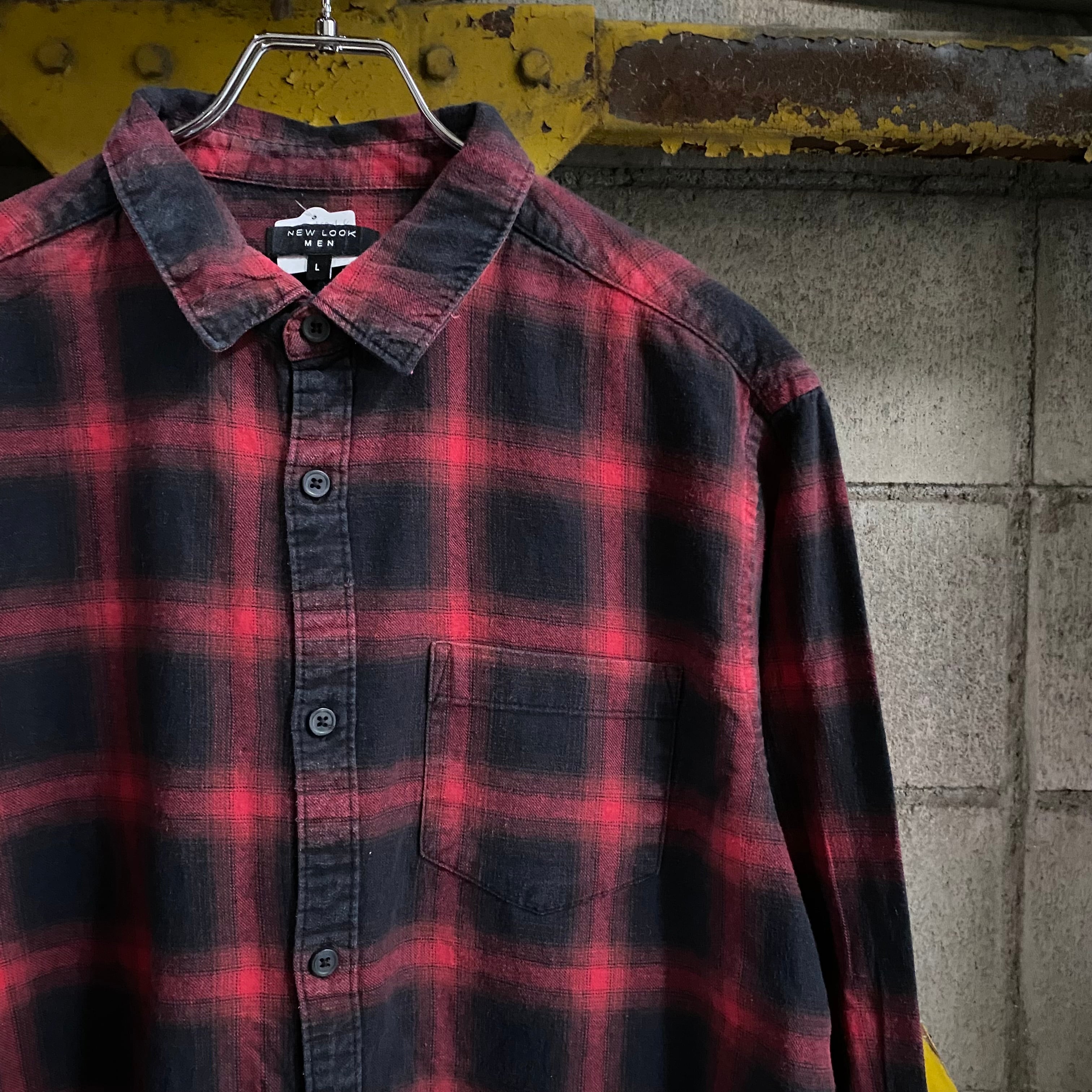 【赤黒オンブレ】Shadow Plaid Flannel Shirt