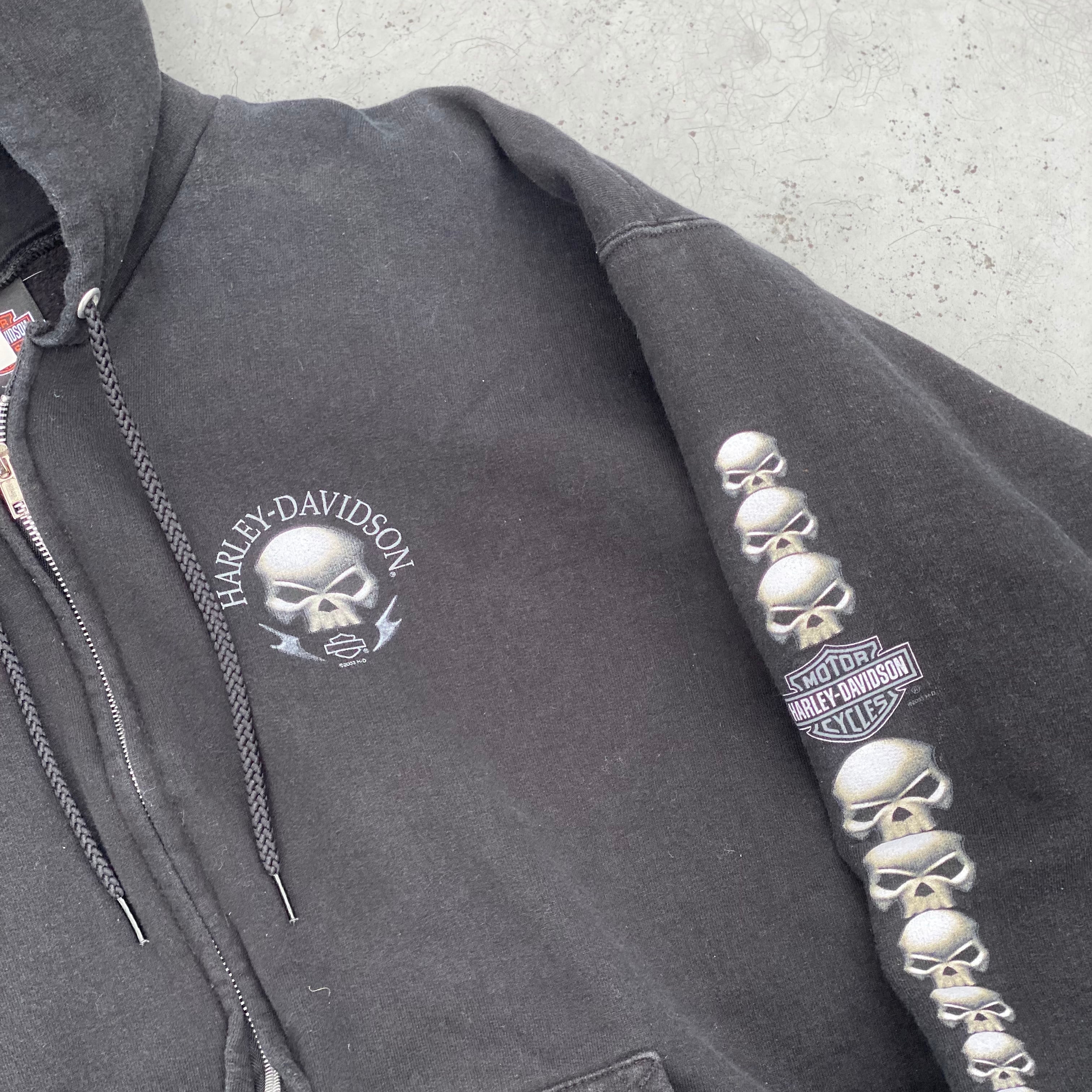 2000年代ハーレーのスカルプリントジップフーディです。