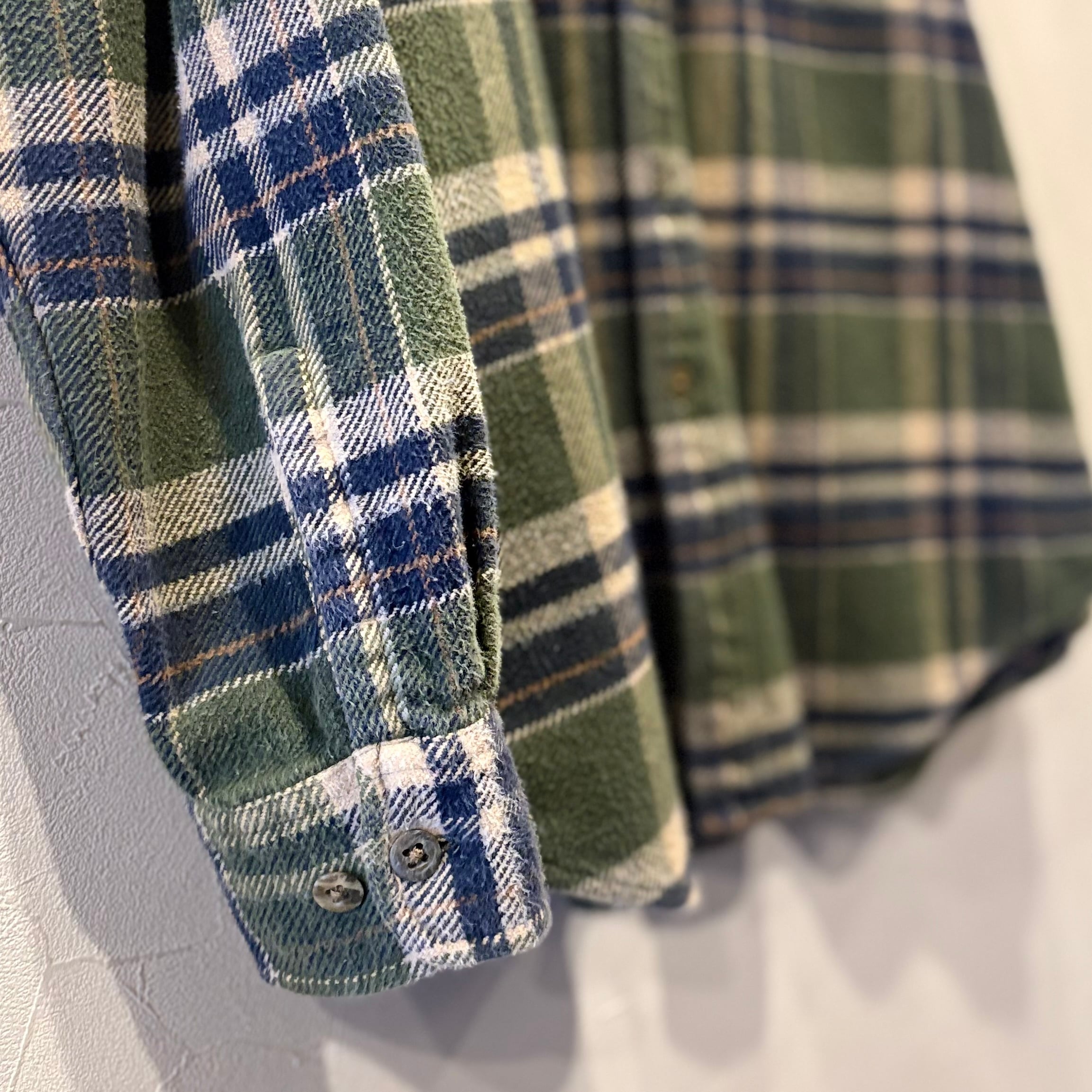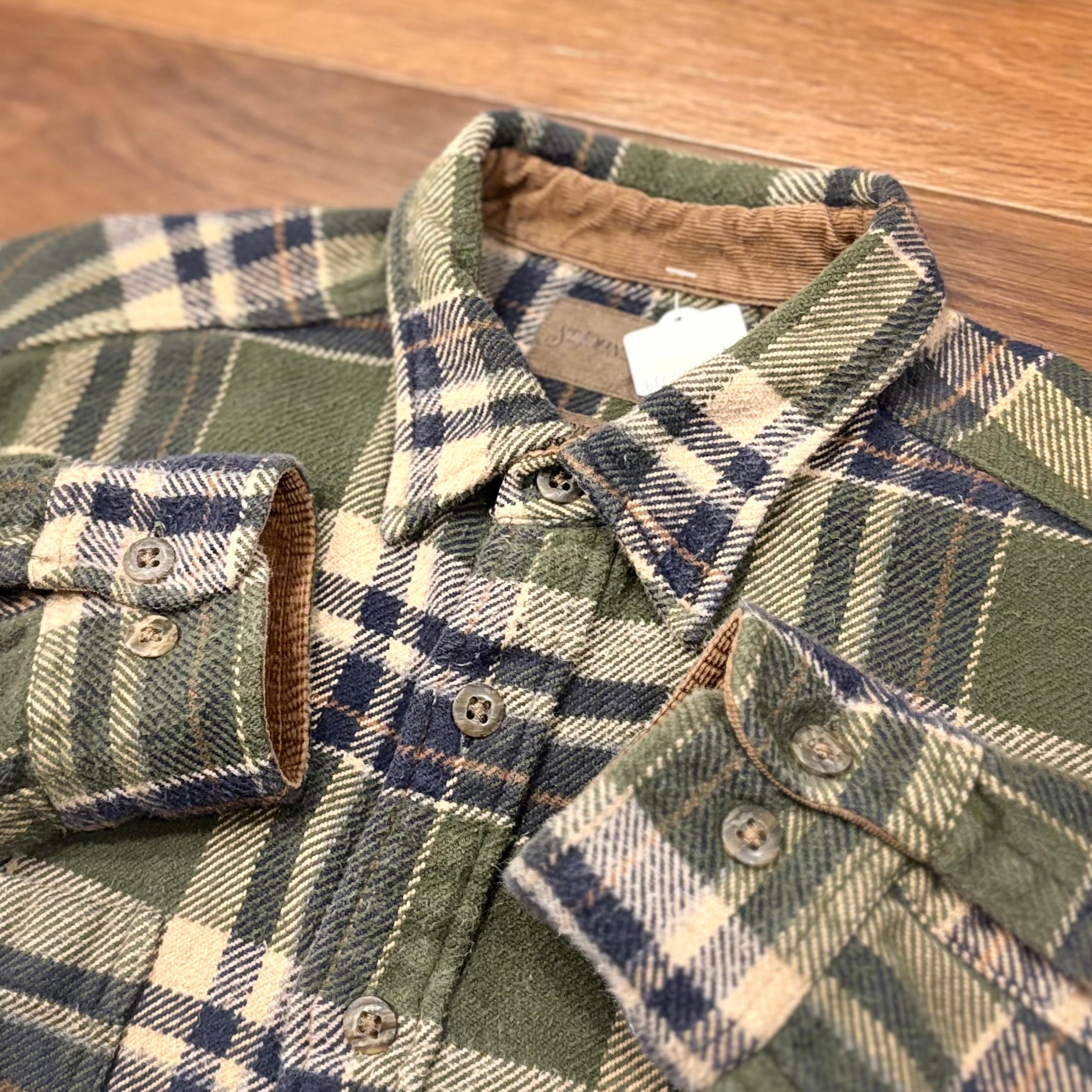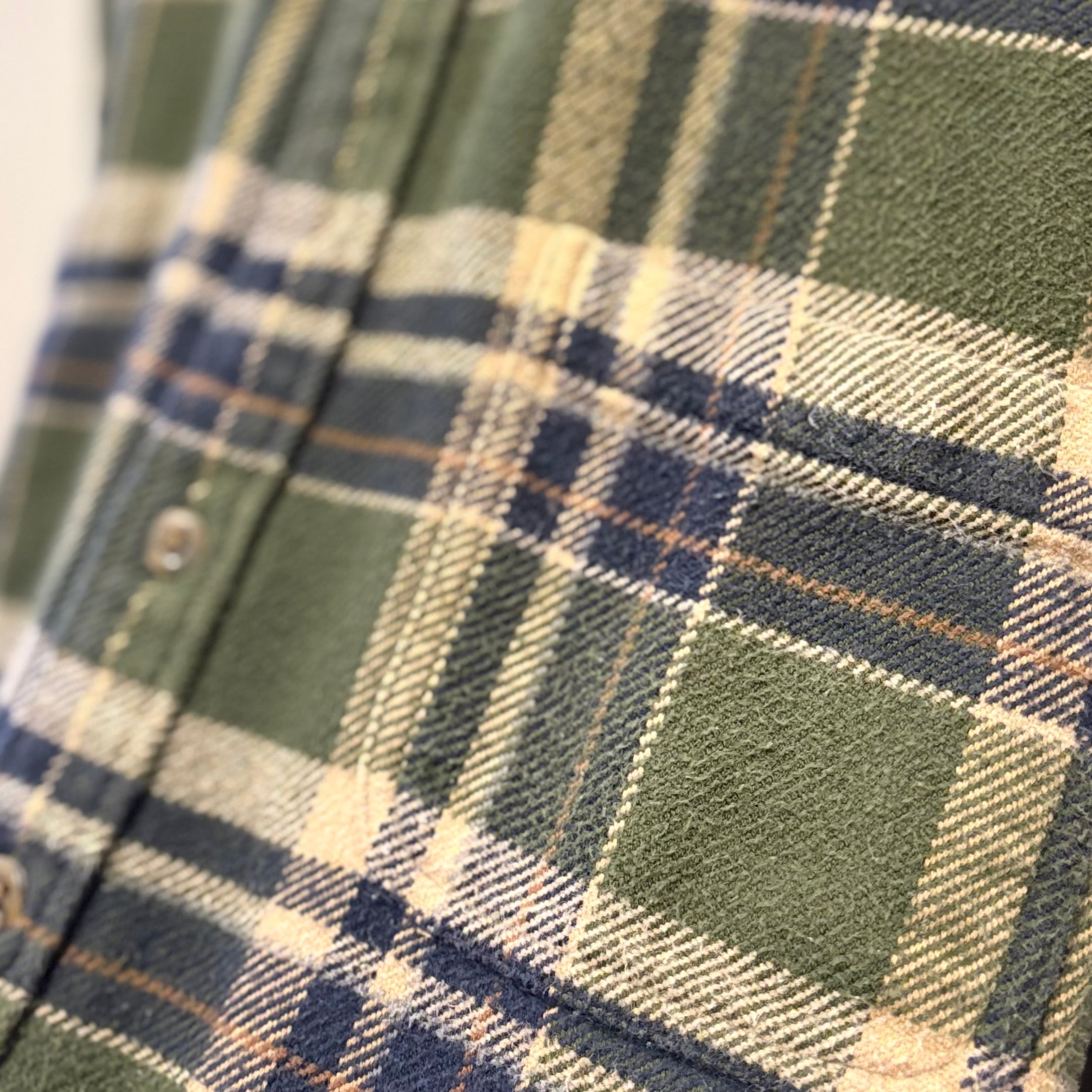探すと意外にない、"カーキ"のネルシャツ。