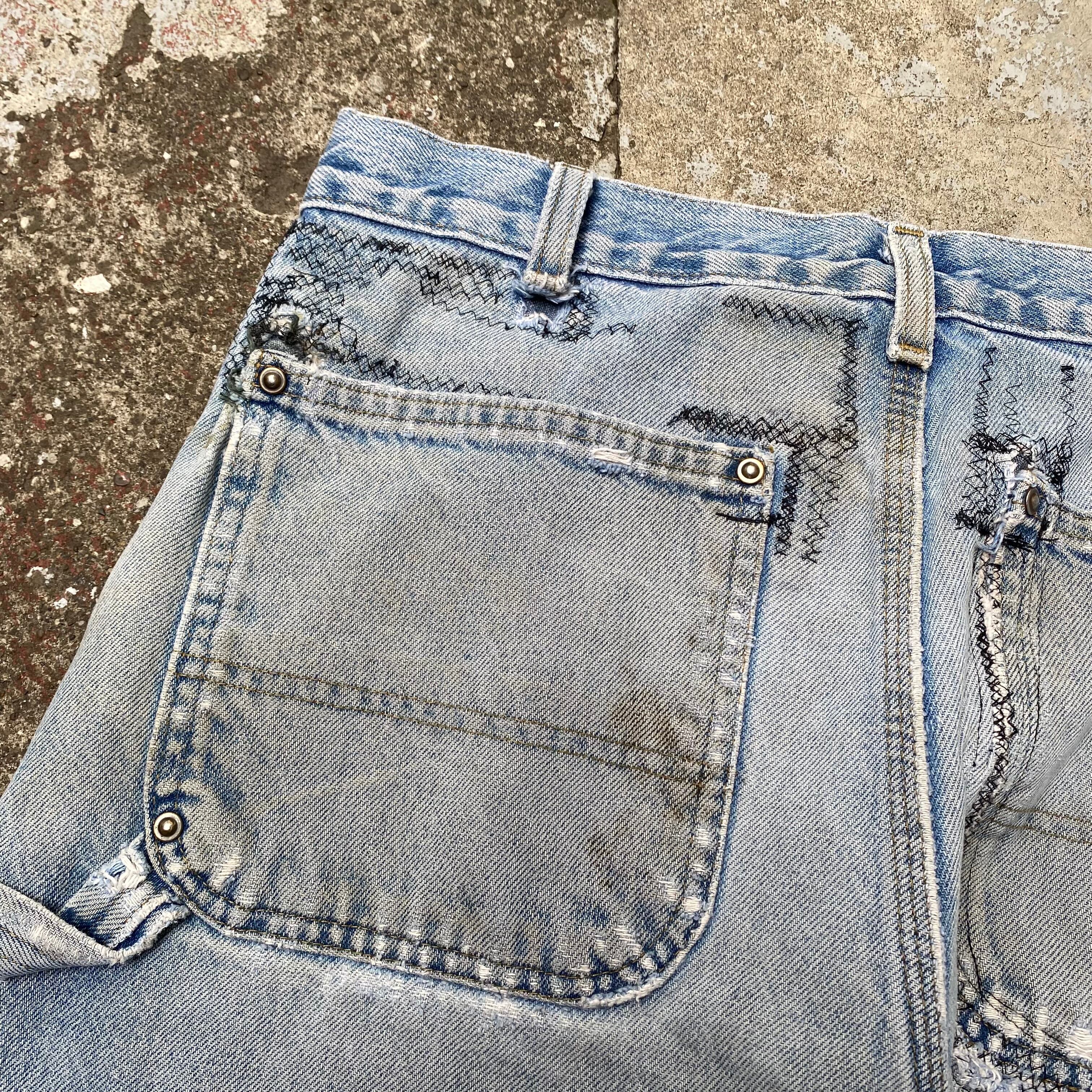 ワークウェアらしくデニムの色味を気にせず黒の糸でリペア。