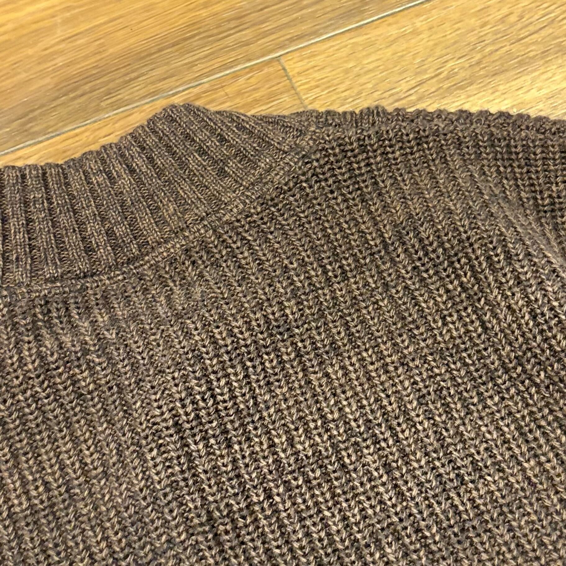 2色のブラウンを交互に編んだ、奥行きのある単色。