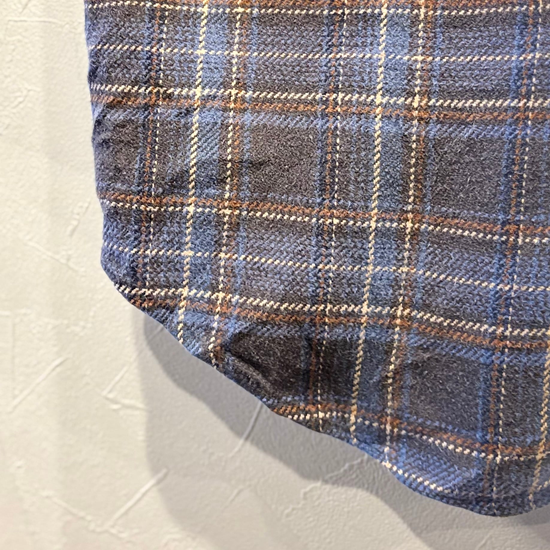 燻んだ青とグレーチェックが魅力のこちら。
