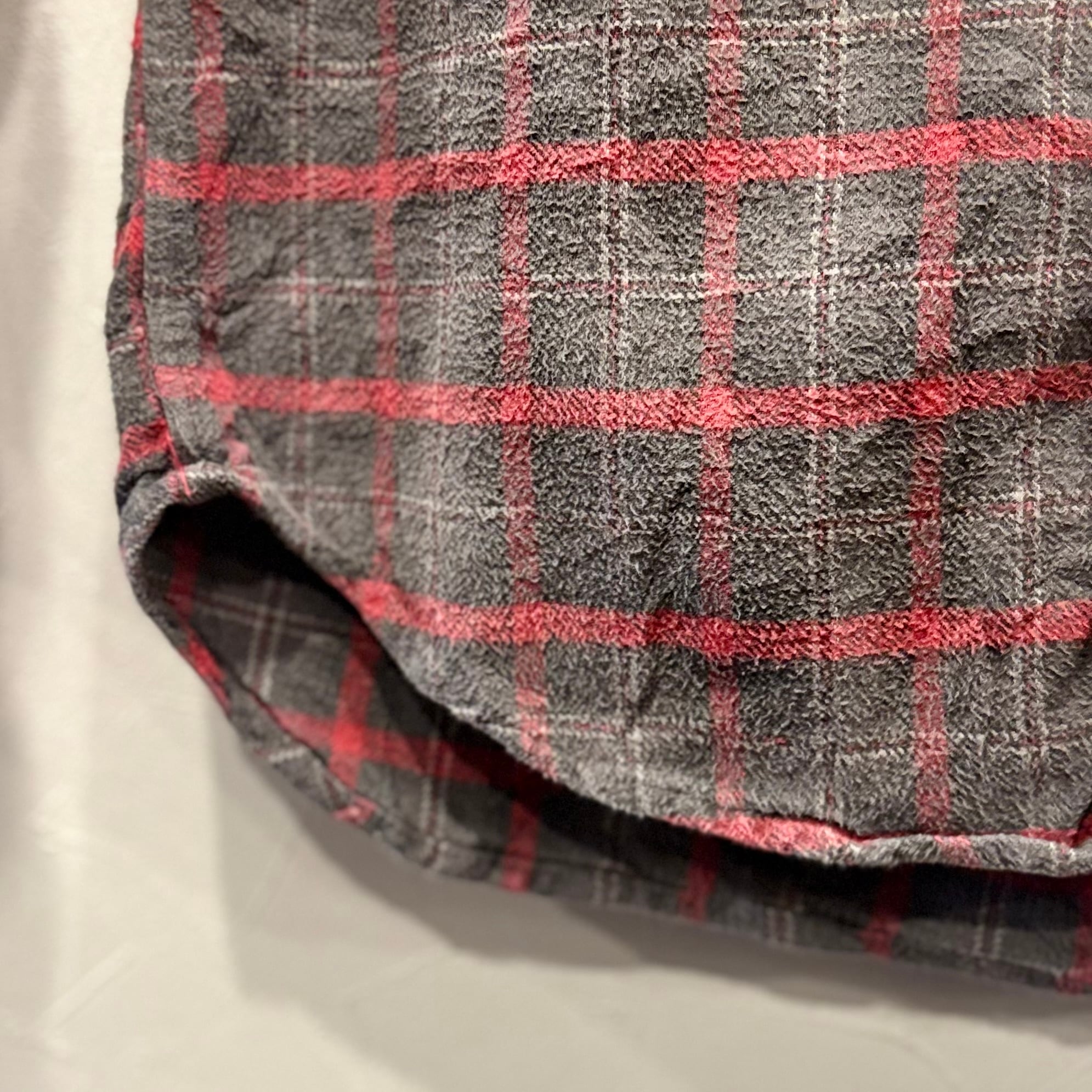 起毛により燻んだ赤×グレーの間違いない配色。