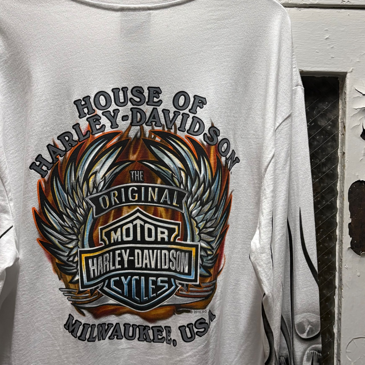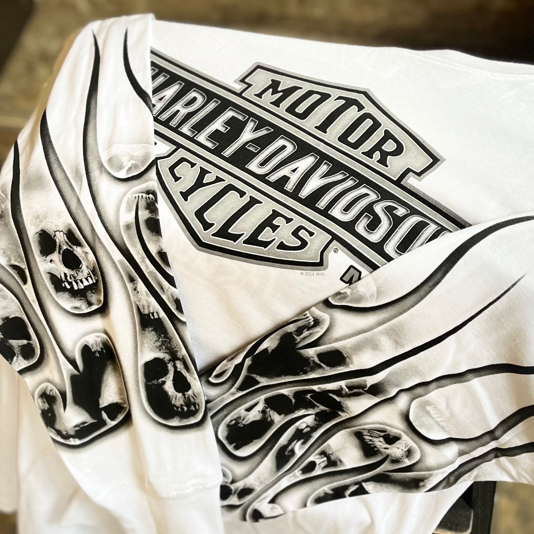 フロントはハーレーらしいプリントに加えて、両袖にスカルと言ったなんとも贅沢仕様。
