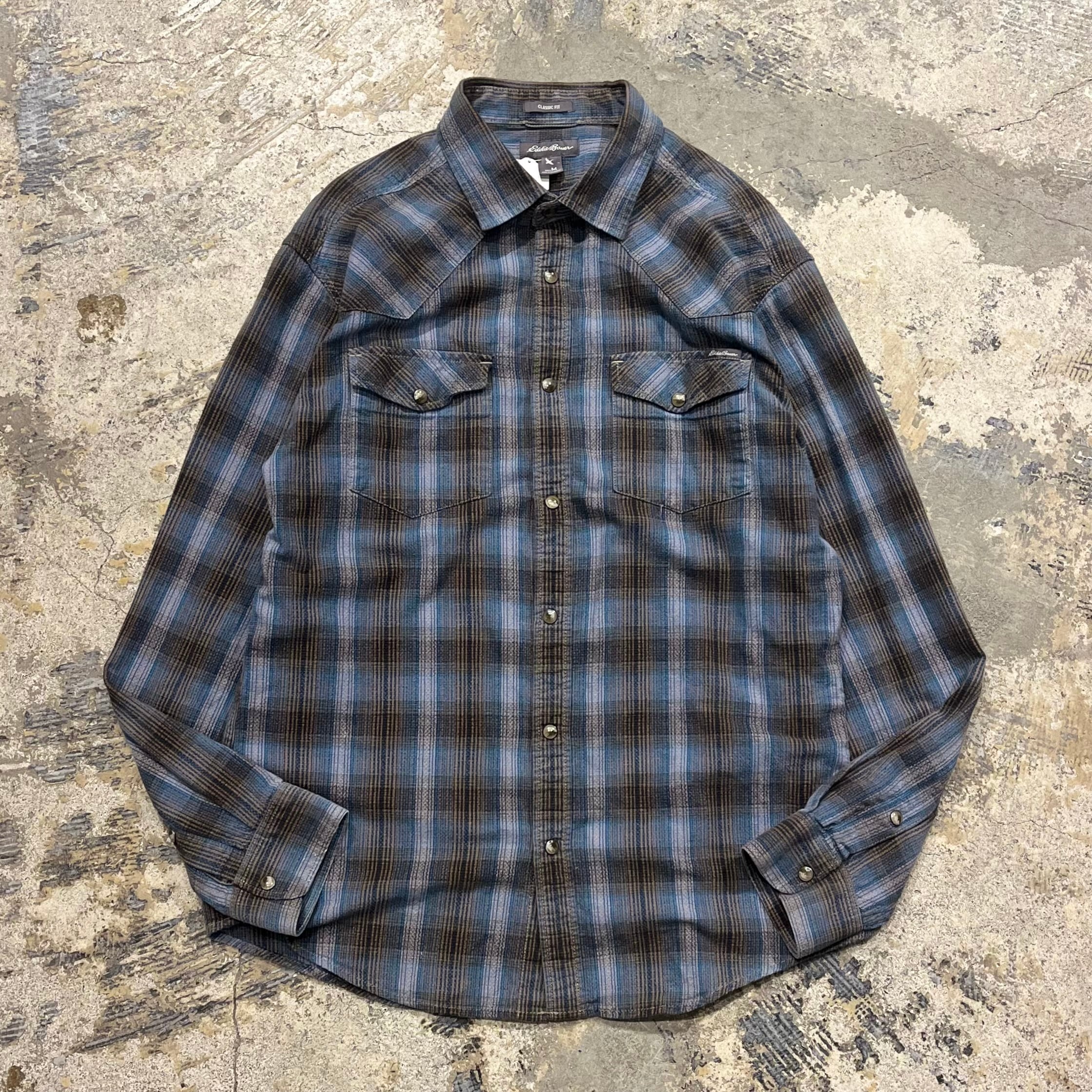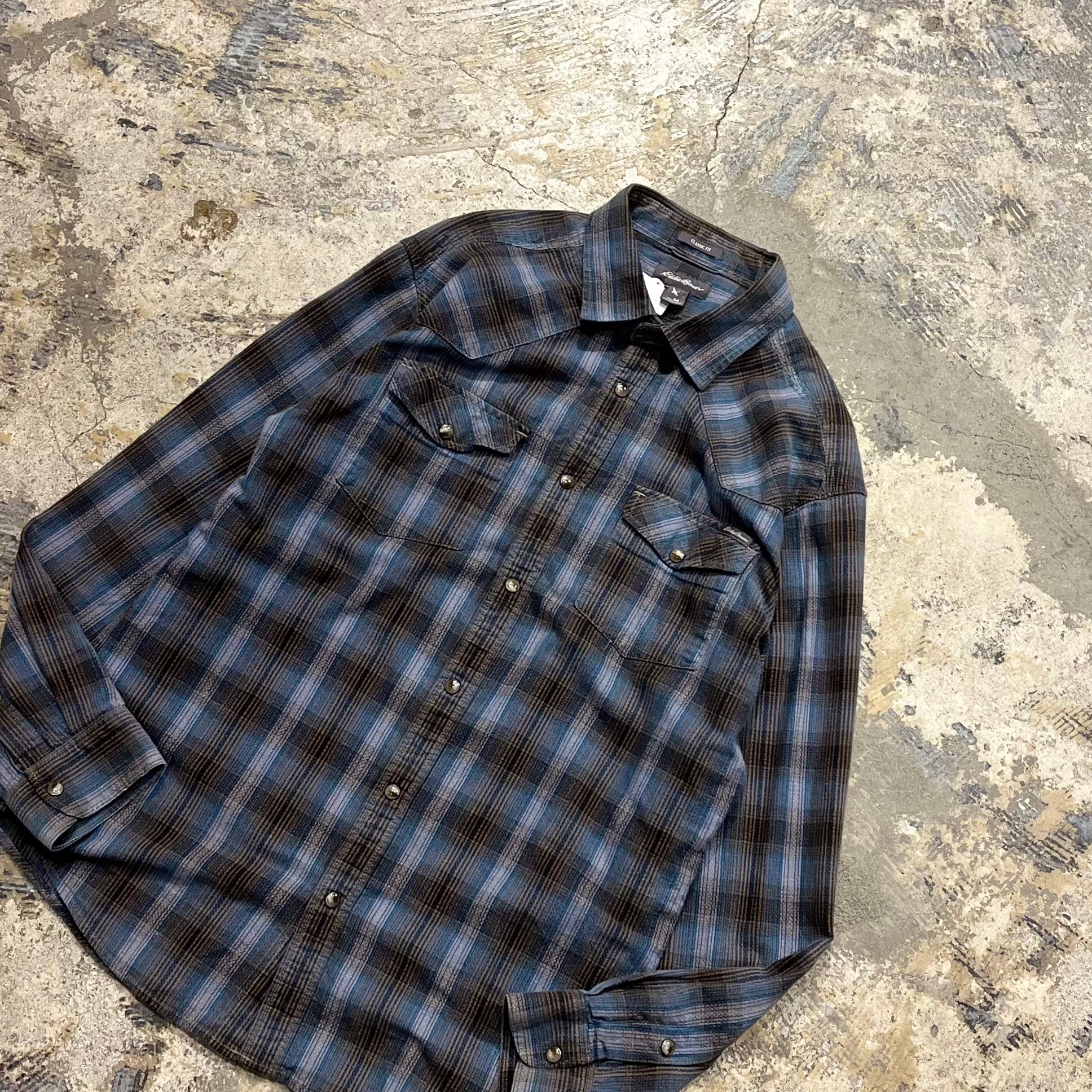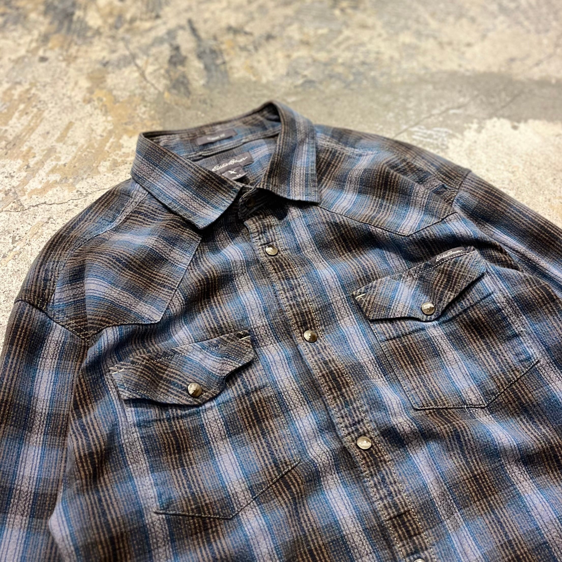 【珍】00's Eddie Bauer Western Shirt "青シャドウ"