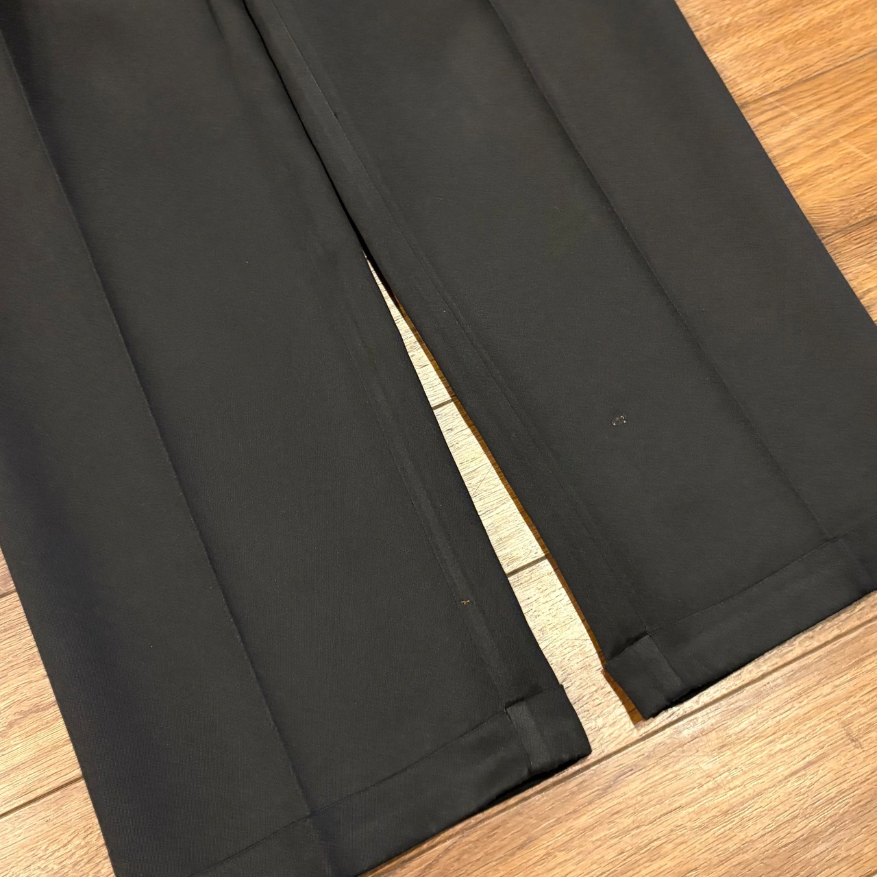 しっかり太さのあるツータックと裾に繋がるセータープレス。