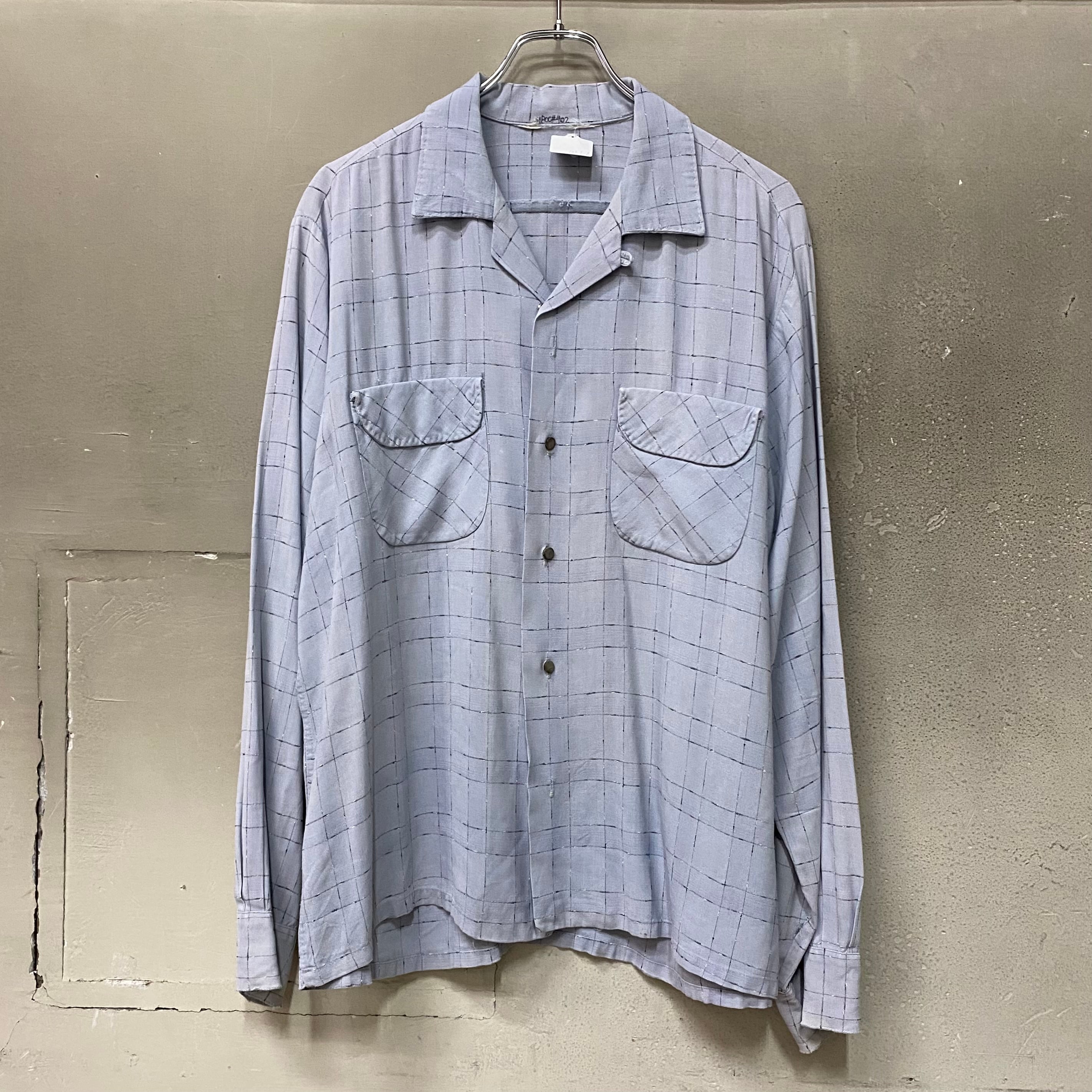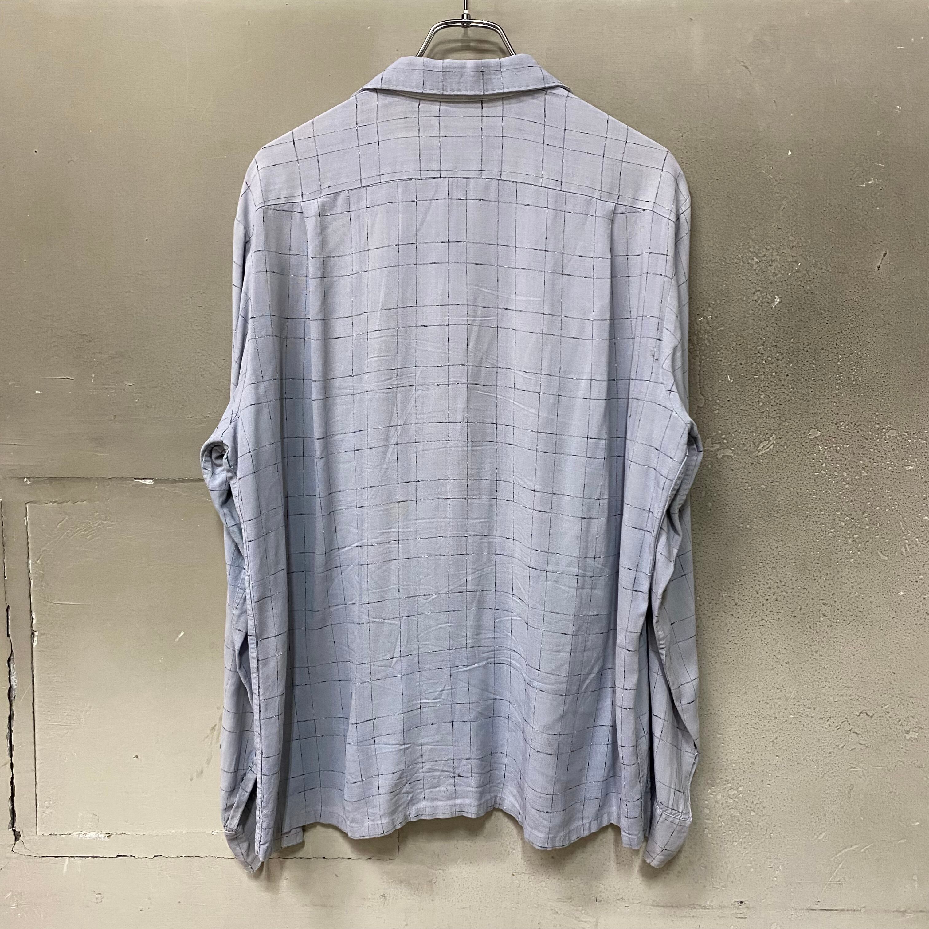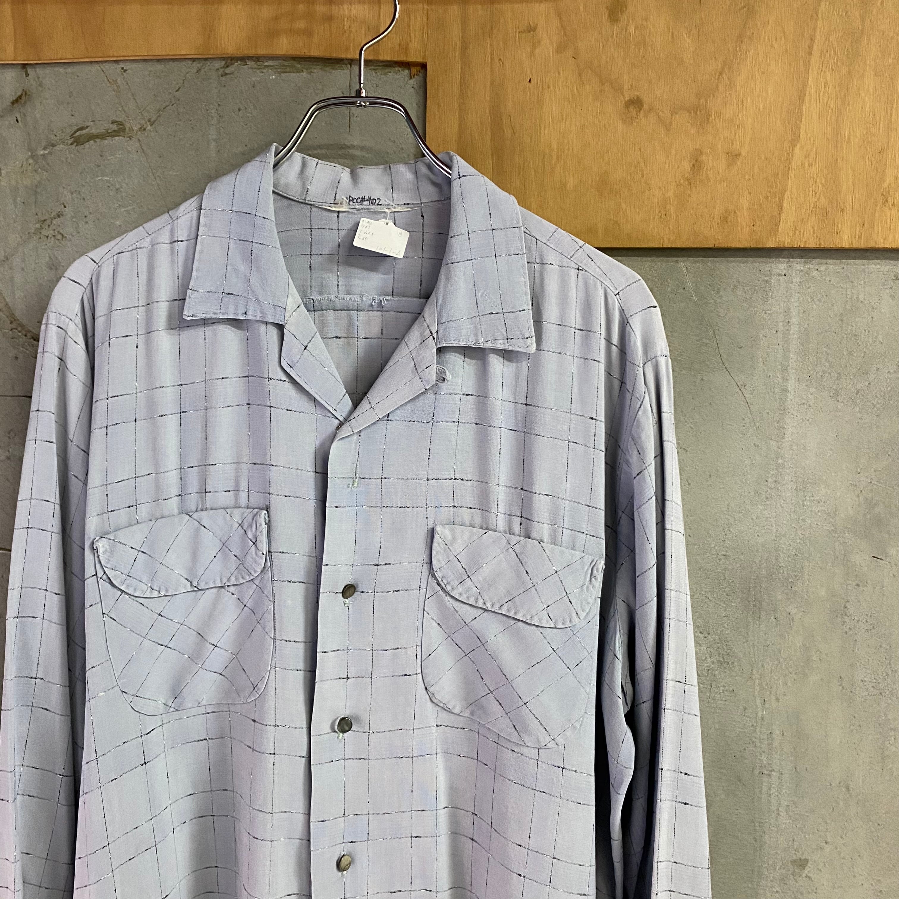 【カスリ】50’s Vintage Rayon Gabardine Open Collar Shirt