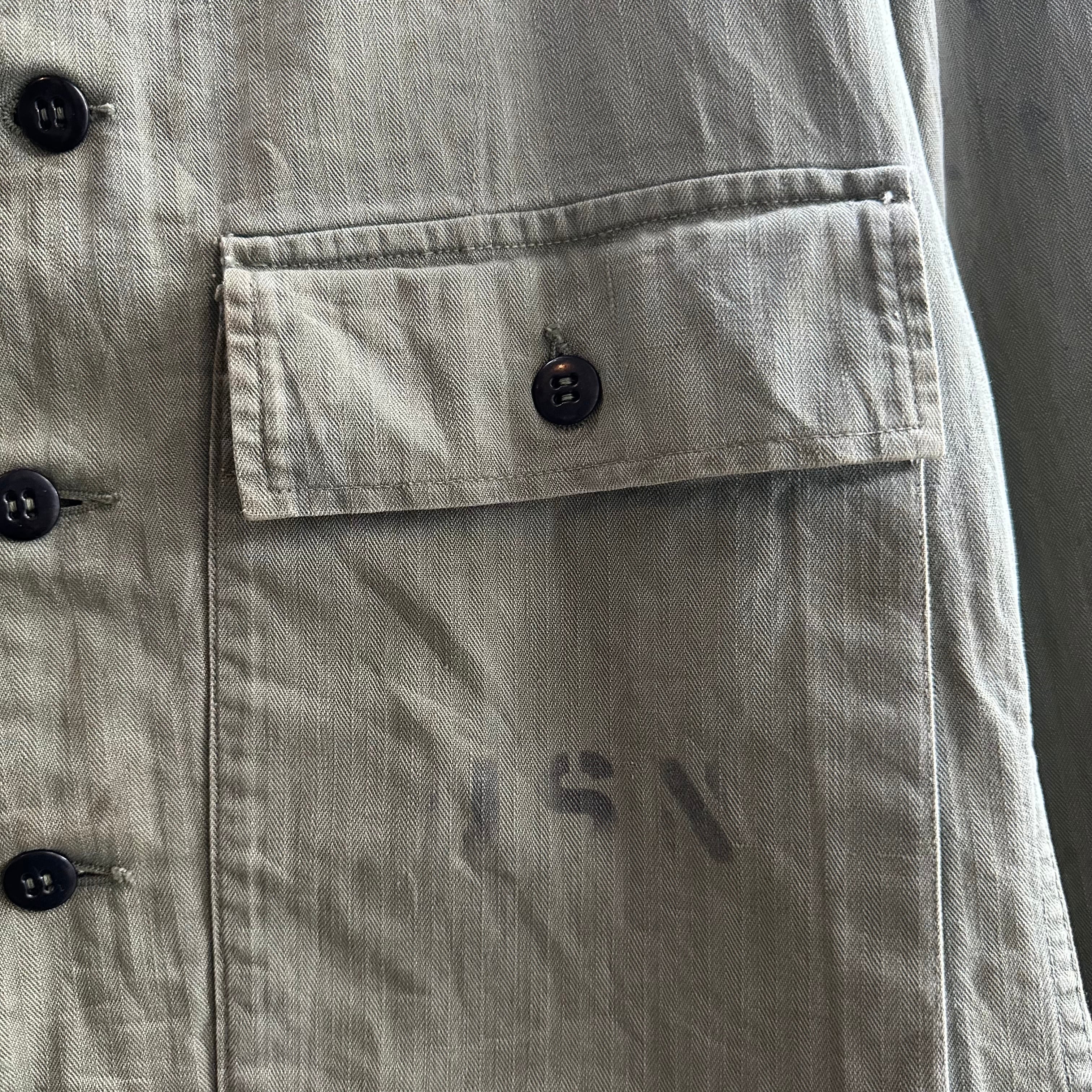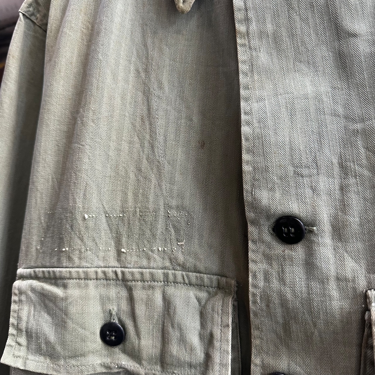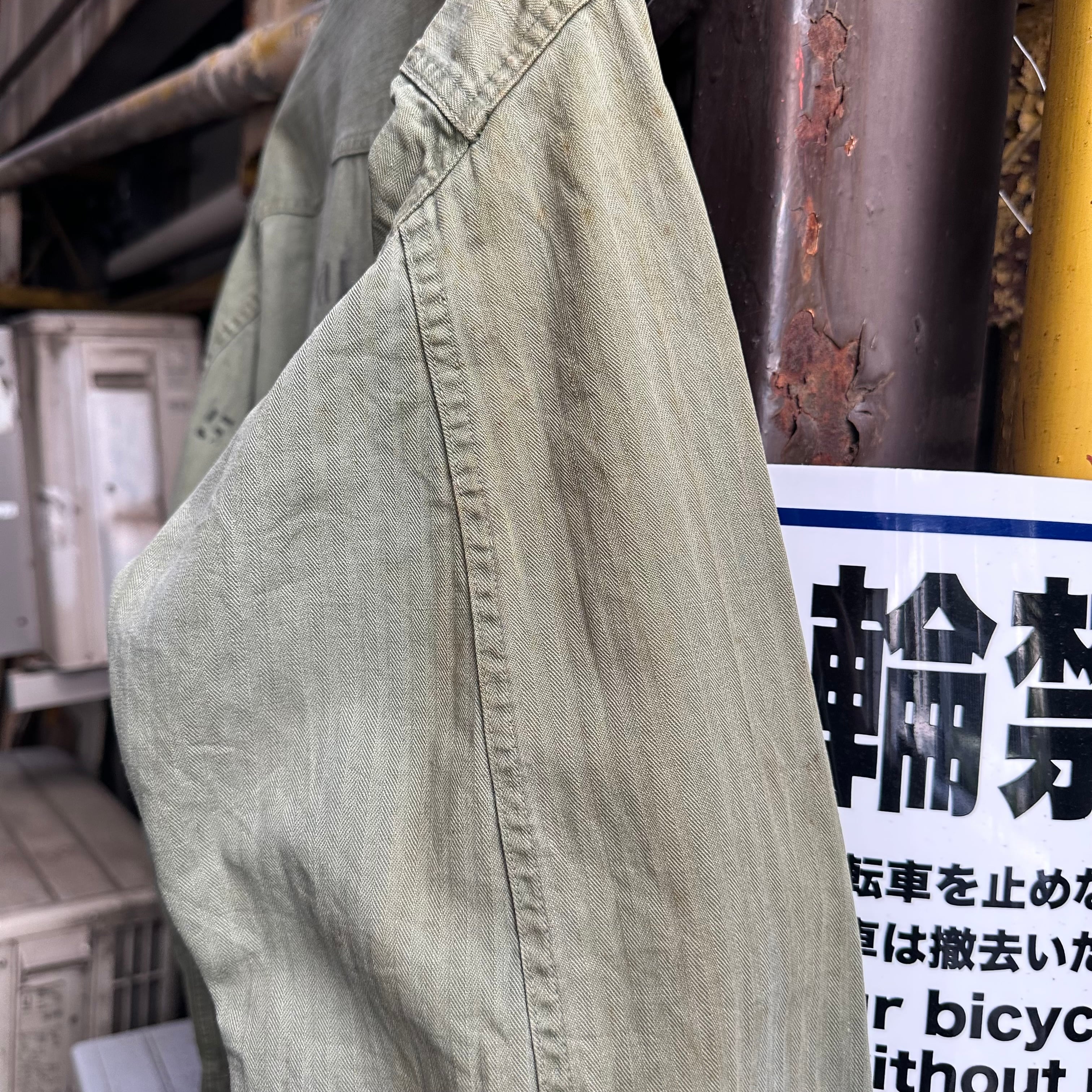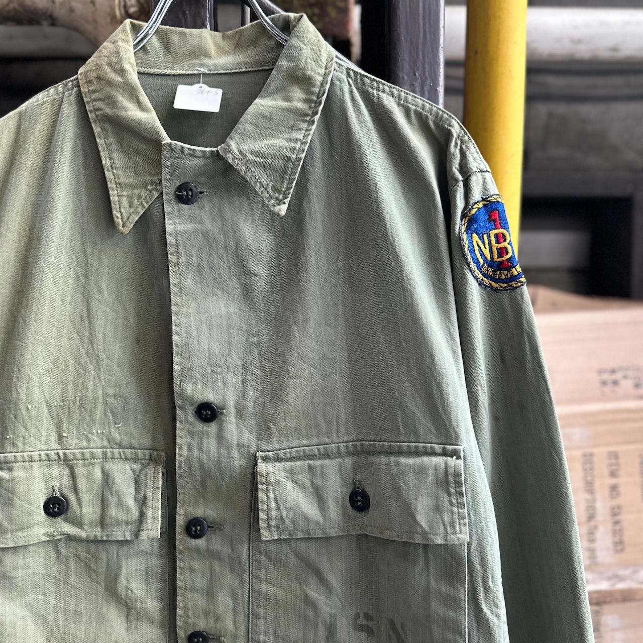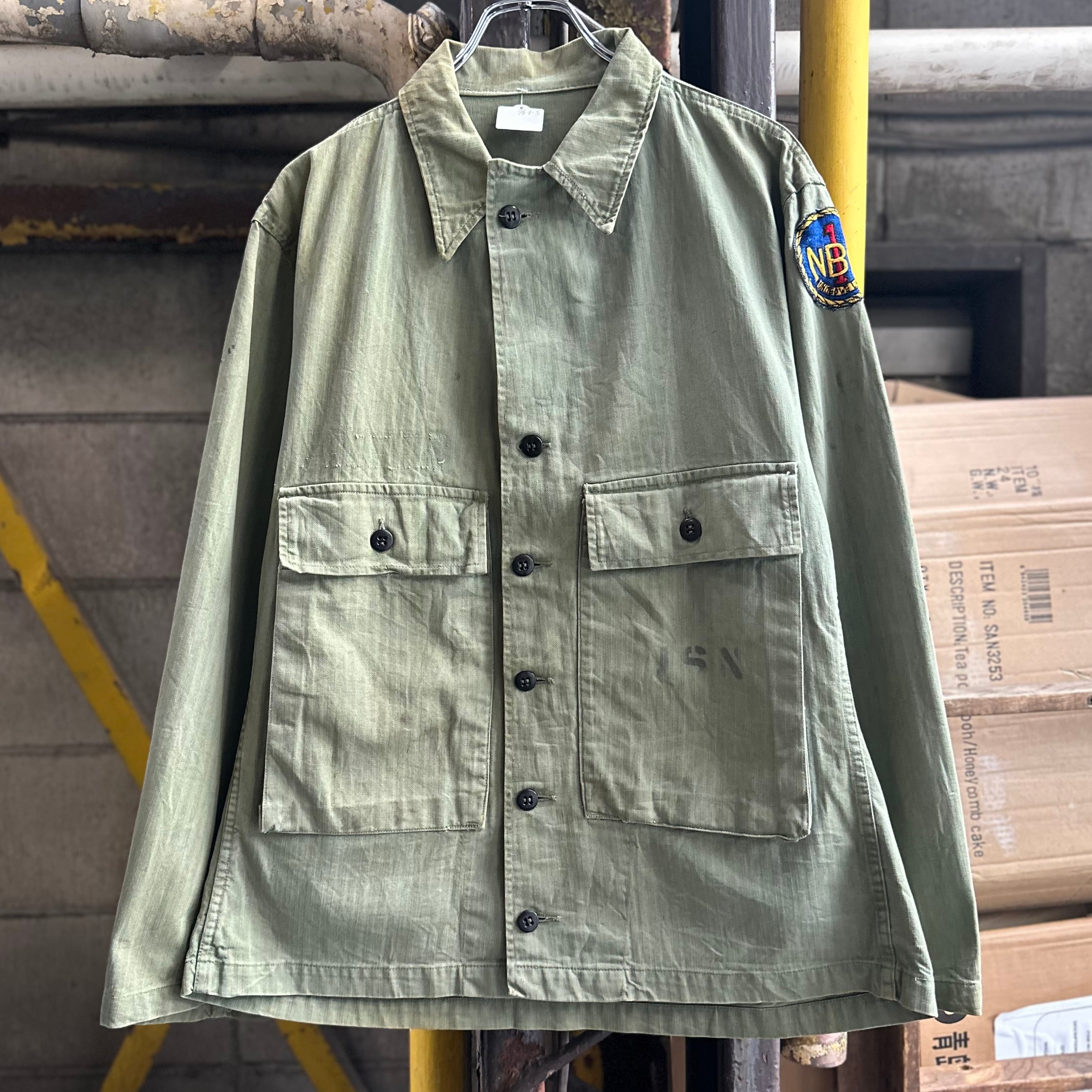 月桂樹ボタンタイプではなく、黒尿素ボタン仕様で珍しい1着、さらにステンシル、ワッペンが入り他の個体とは異なる雰囲気での着用も可能です‼︎