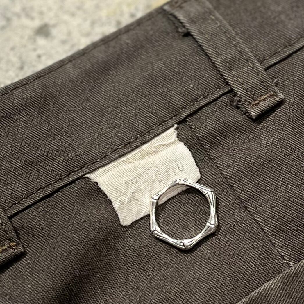 うっすらセンタープレスの色落ちも確認でき、無骨で男臭い印象とどこか綺麗な印象が混在する面白いパンツです