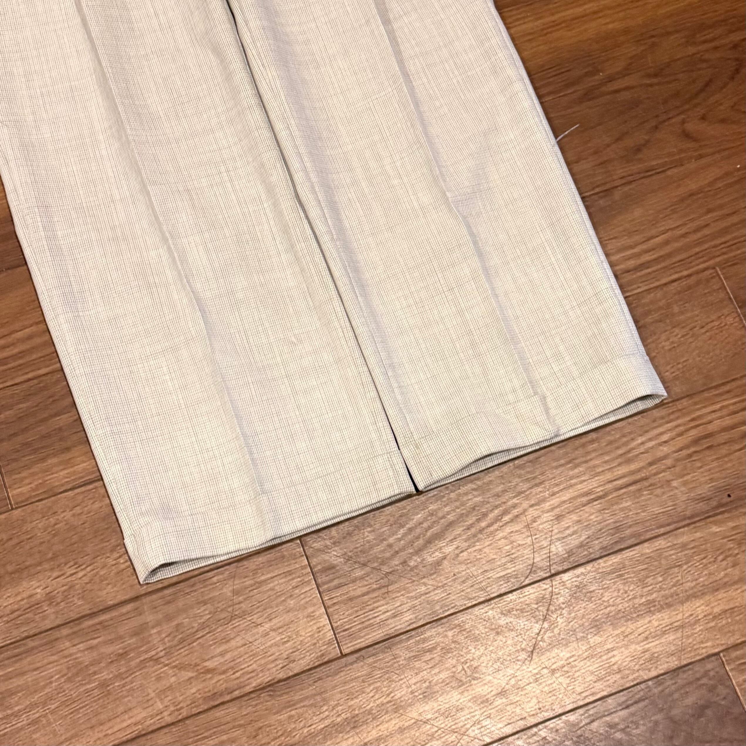 スラックスはポリエステル素材のものが多いですが、こちらの1着はウールが含まれているので、若干生地感は分厚め!
