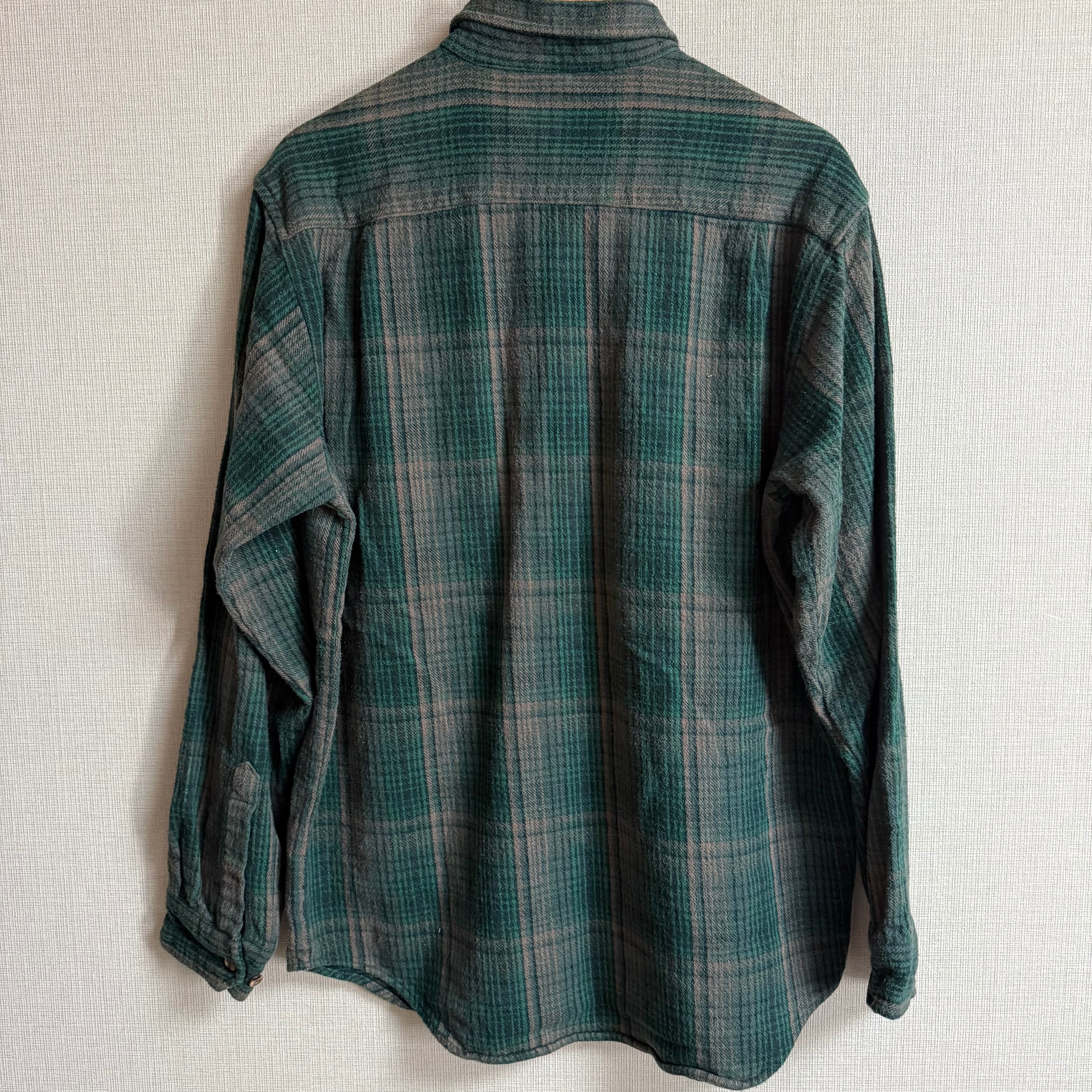 【神色】00s 黒緑グラデーションカラー ヘビネル ネルシャツ フランネル