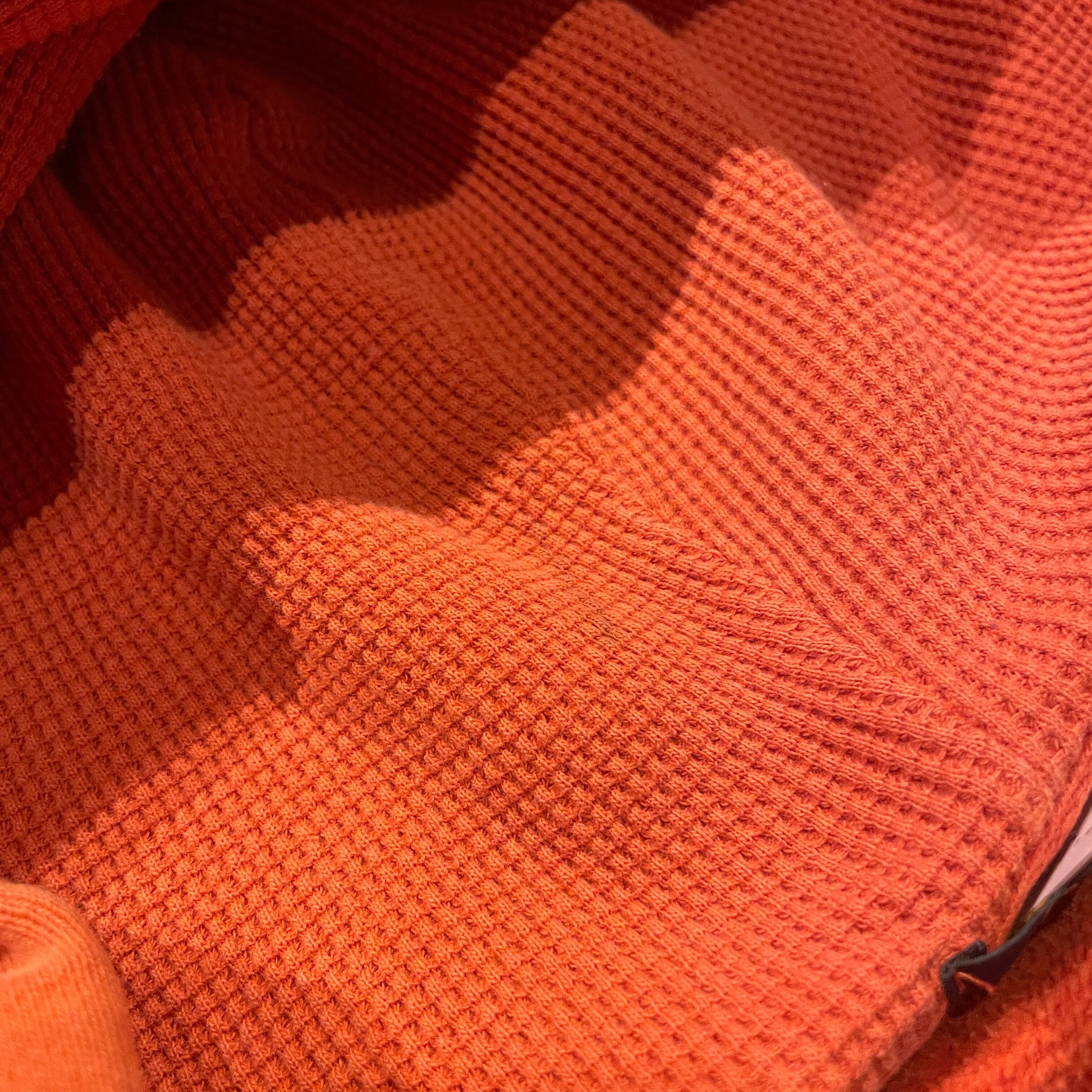 若干の淡さを感じるオレンジの配色に身幅やアームホール太めで長すぎない丈感のグッドシルエット