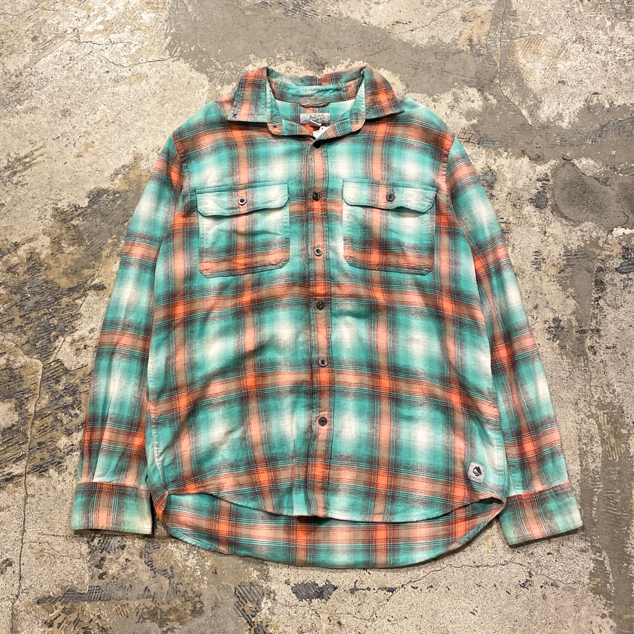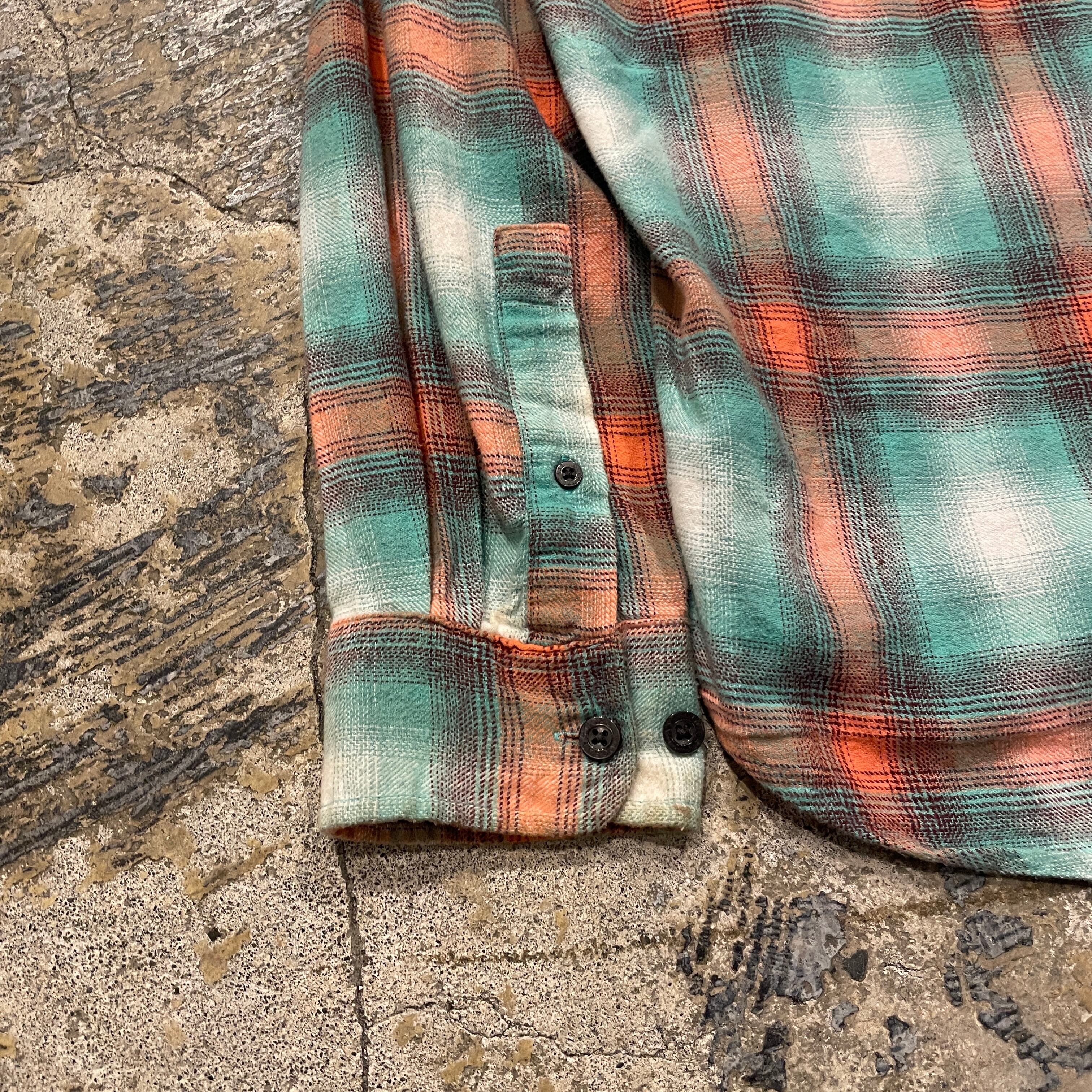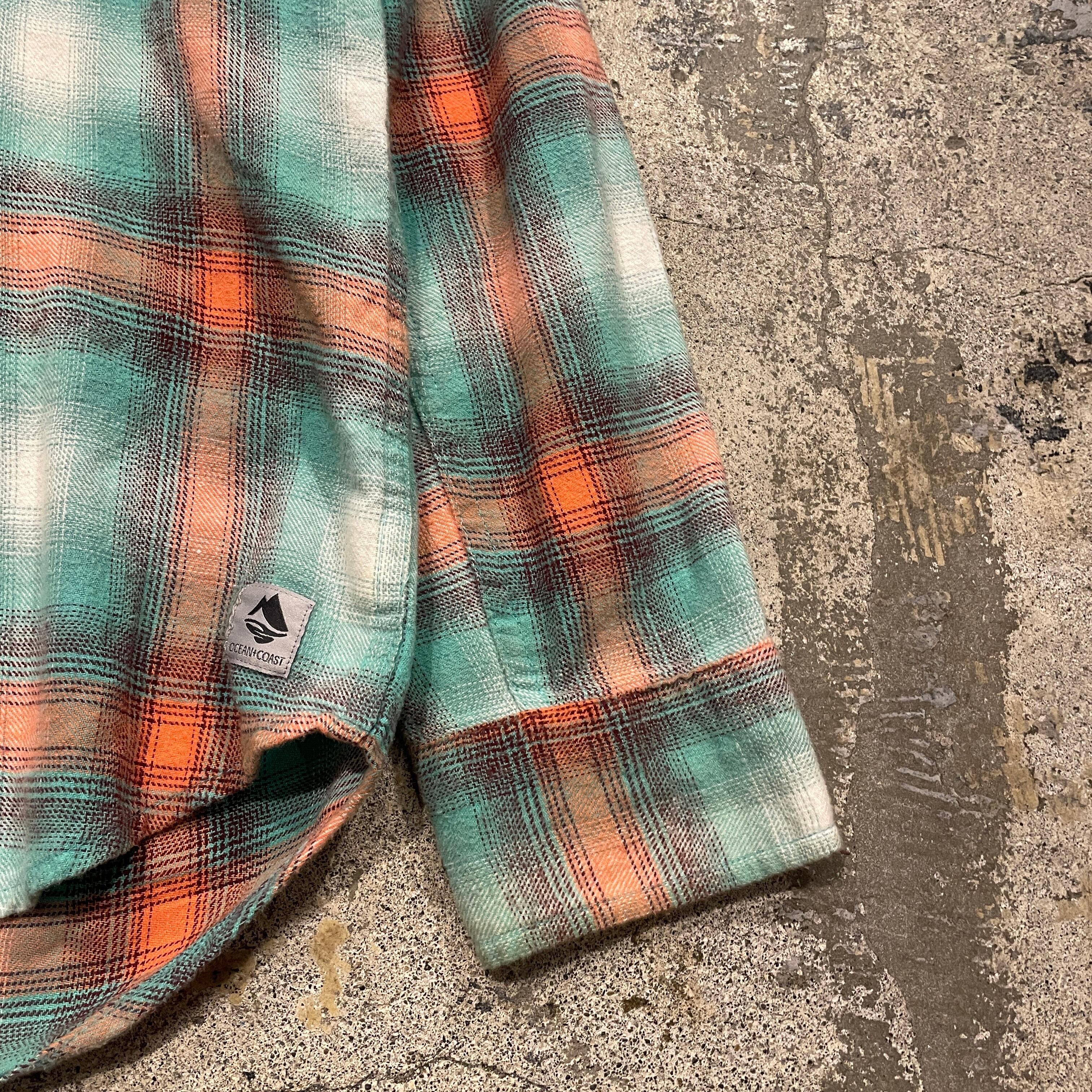 【メッチャロカ柄】90's~ OCEAN COAST Ombre Check Shirt L/s "LightBlue orange"