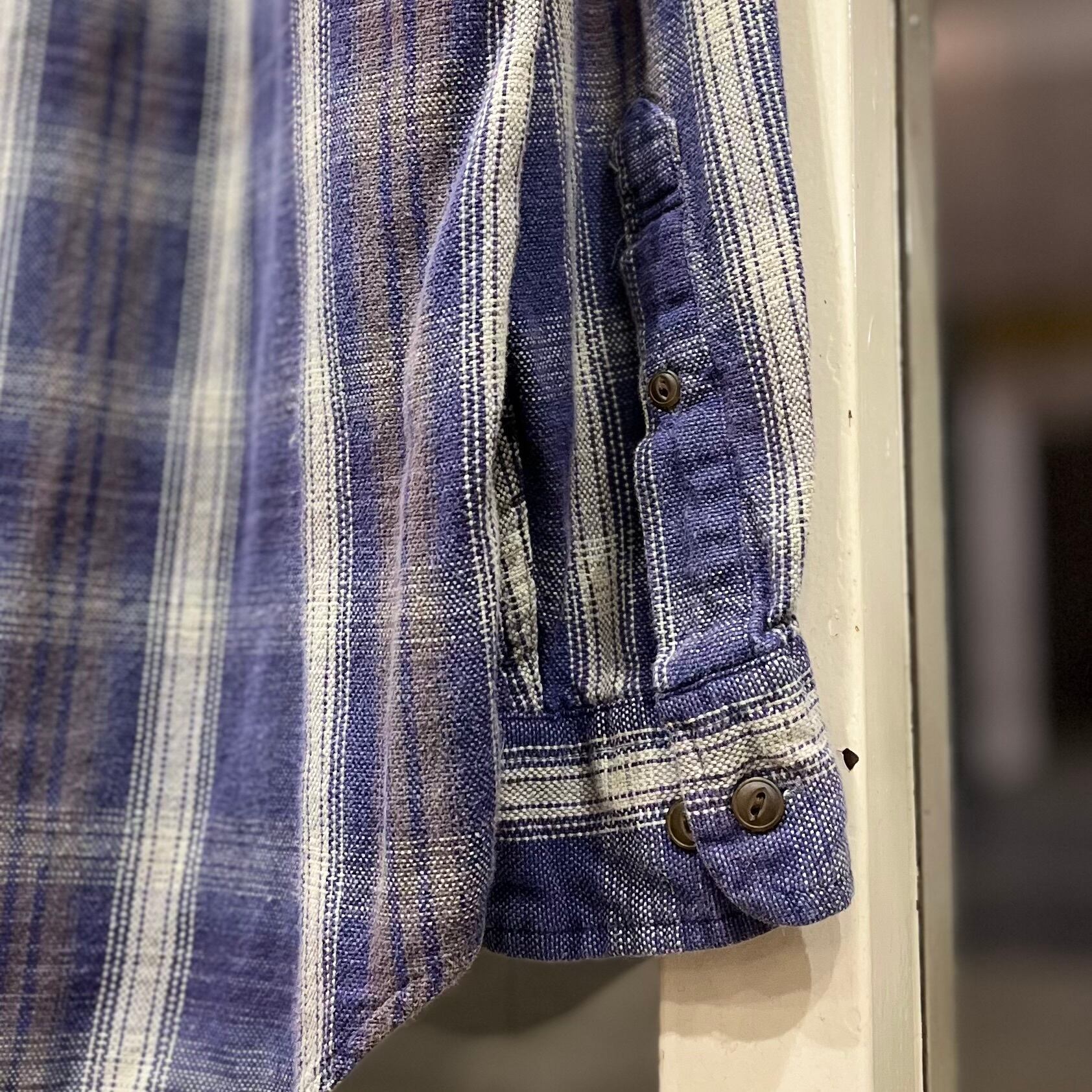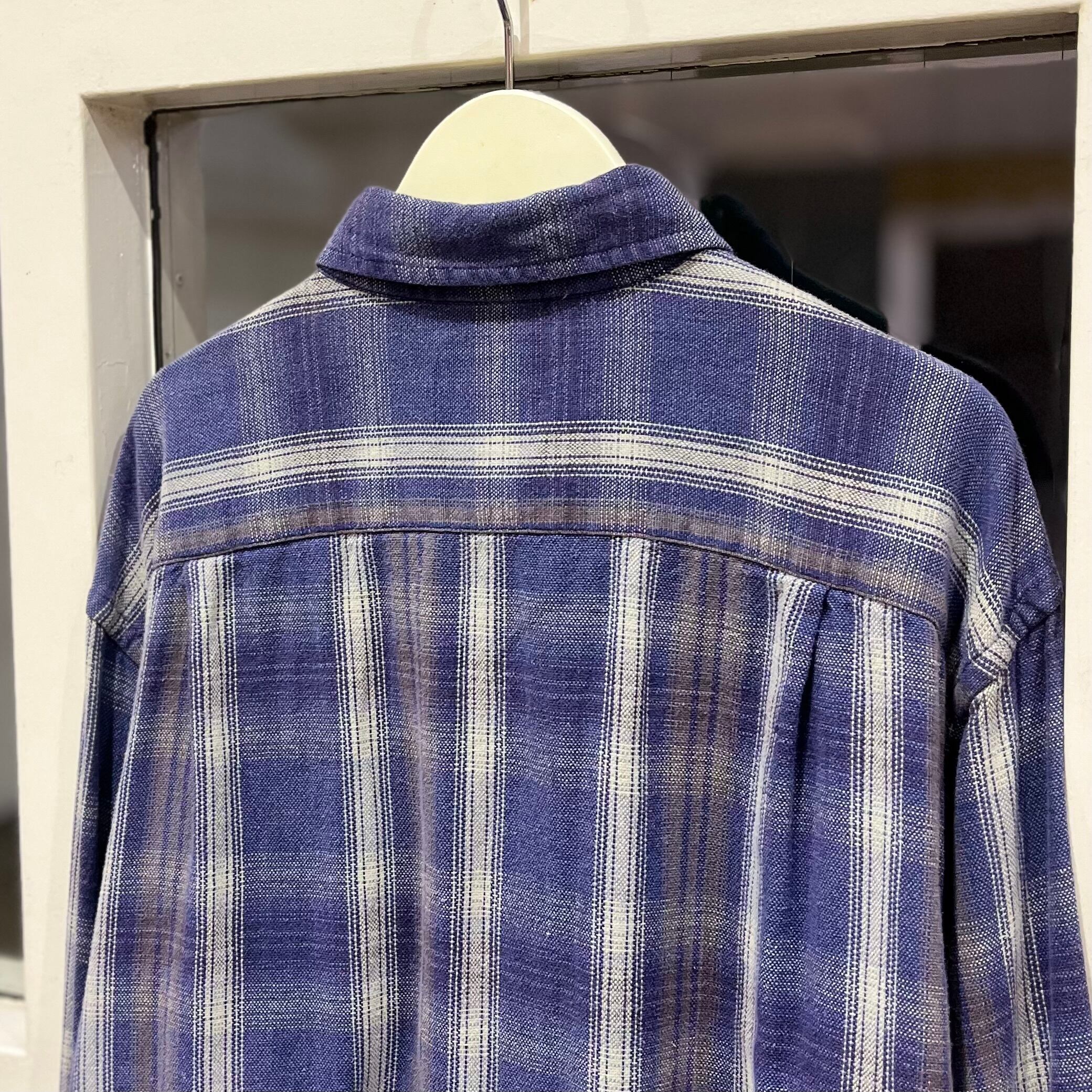 珍しい「ラベンダーカラー」のボディに紫×ブラウン×白のシャドウチェックが良く映えているこちらの一着
