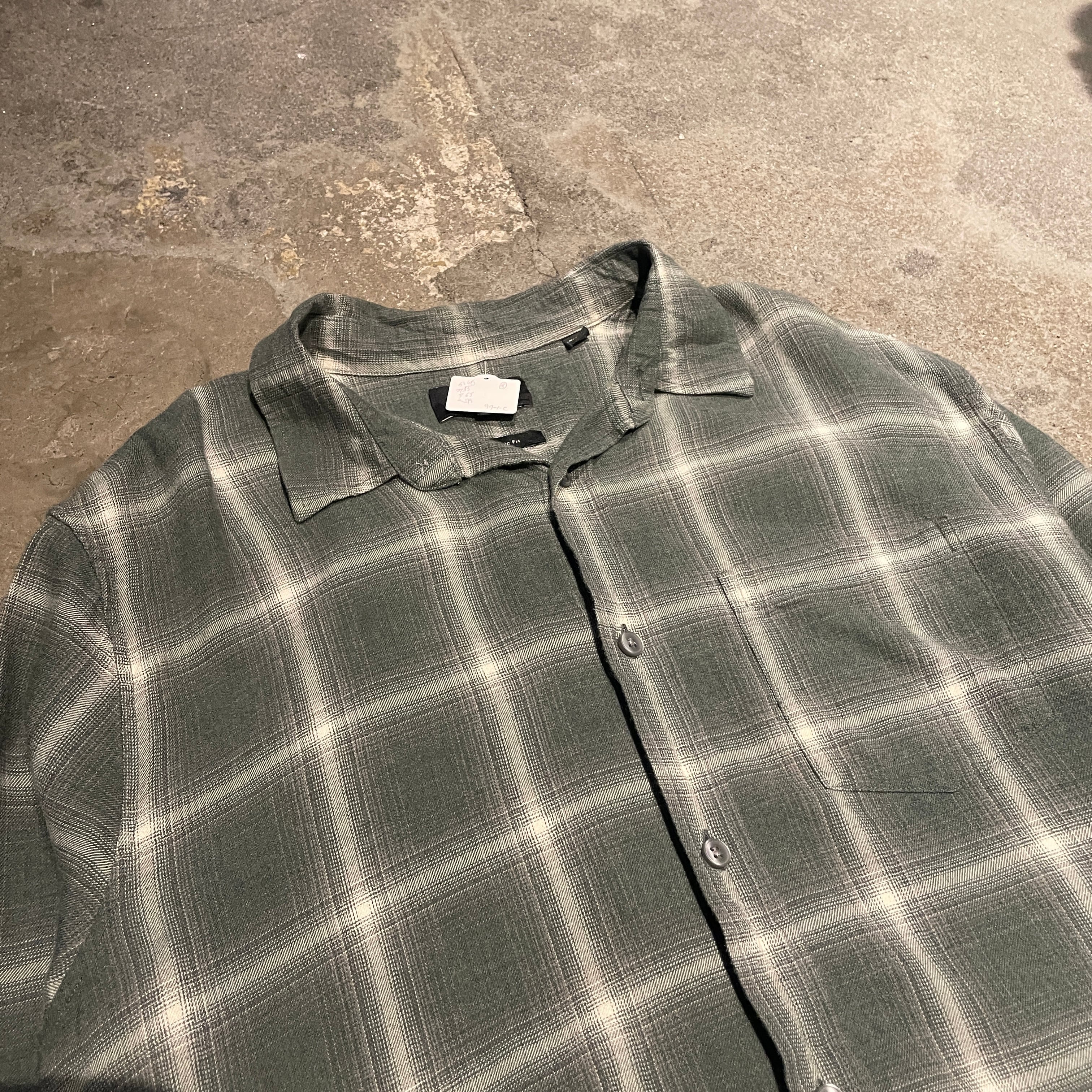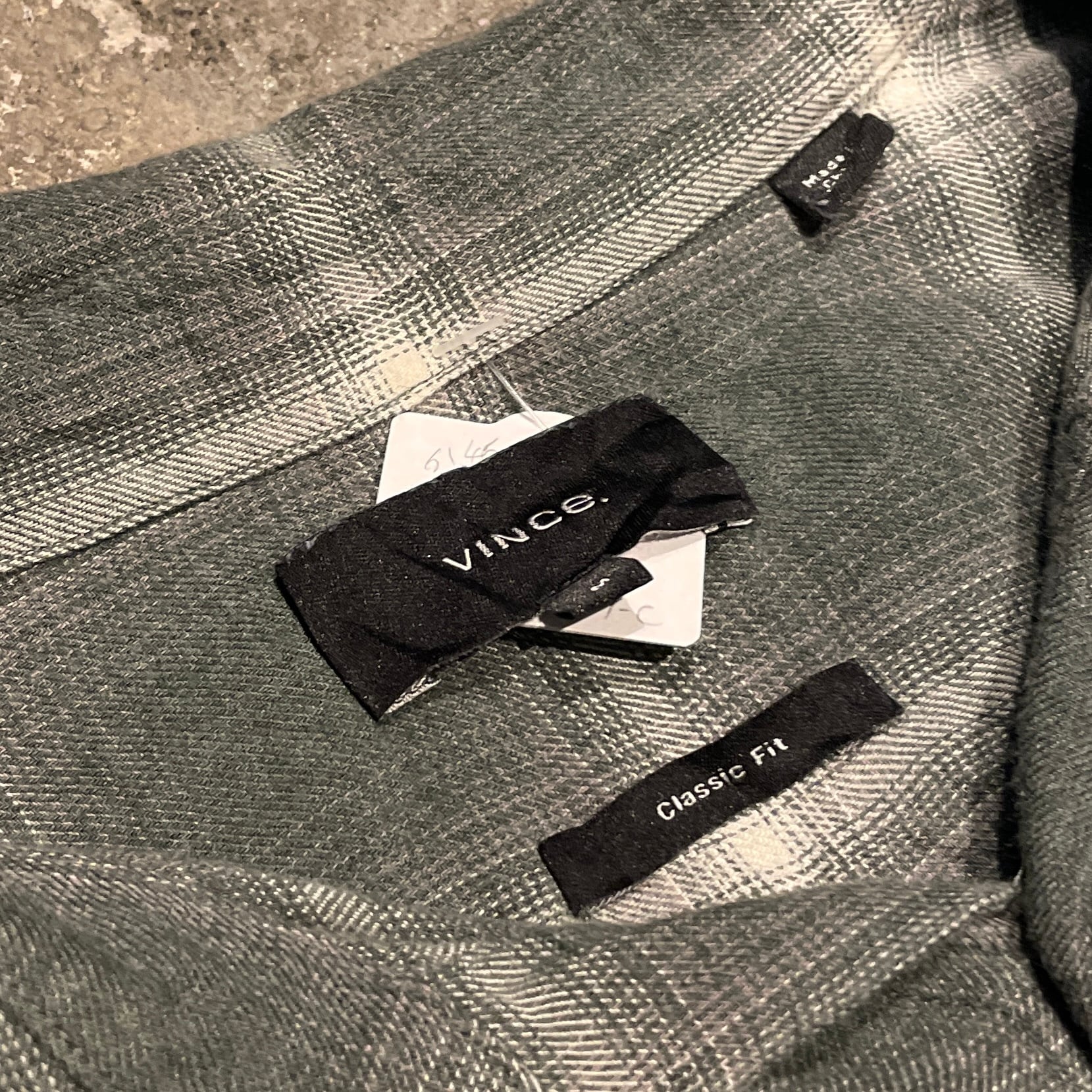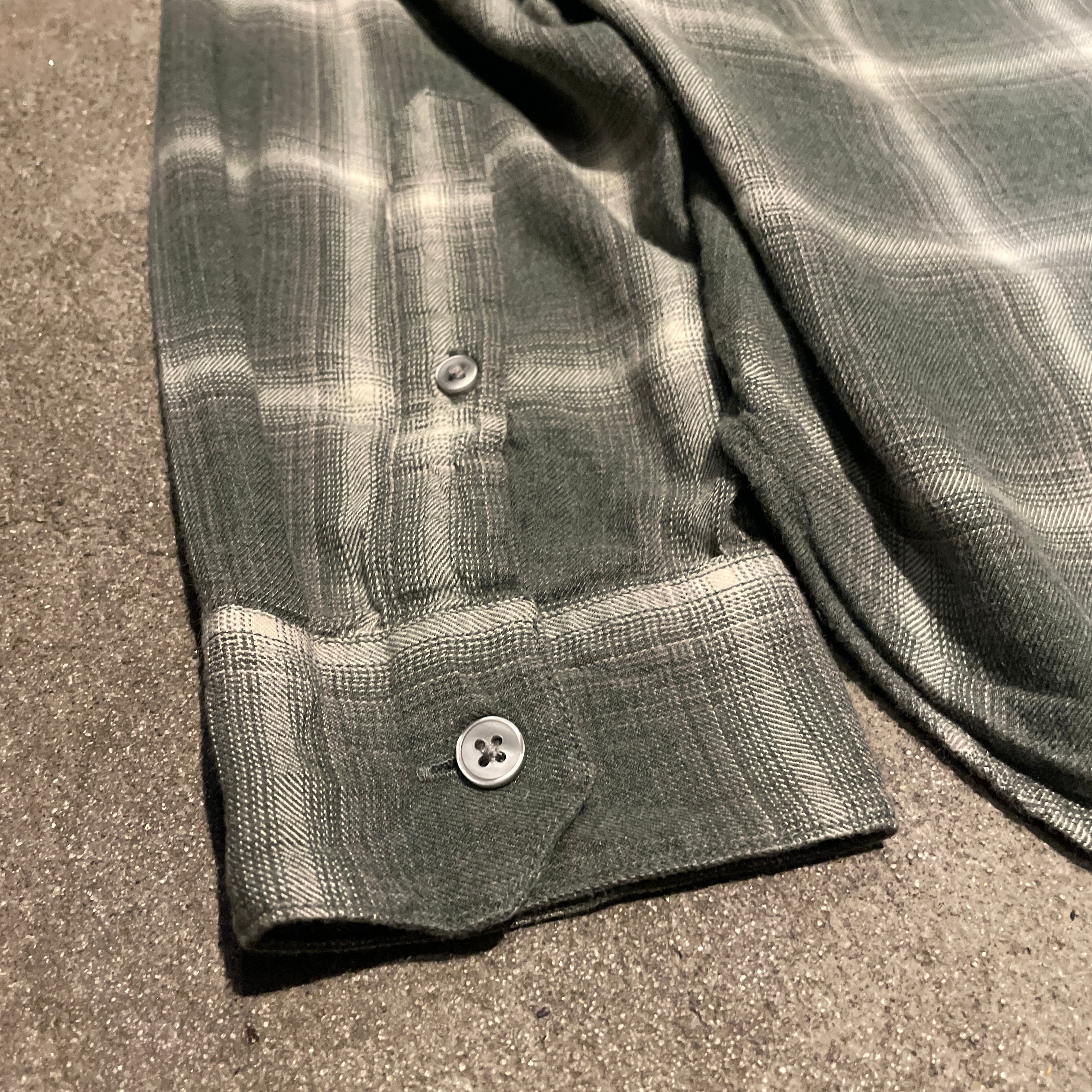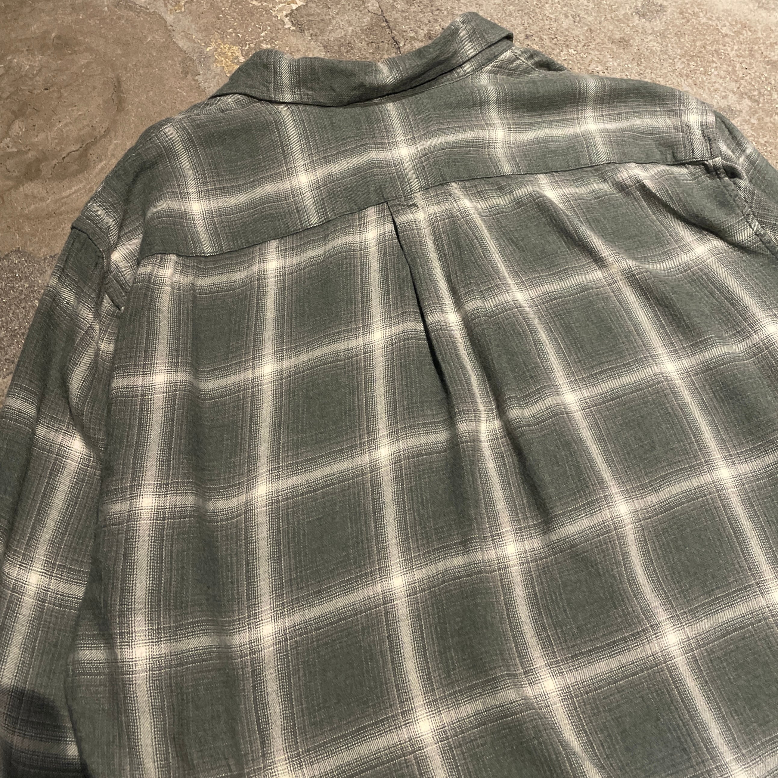 【レーヨン混マチ付】00's VINCE Cotton Rayon Ombre Check Shirt "GREEN SHADOW マチ付き"