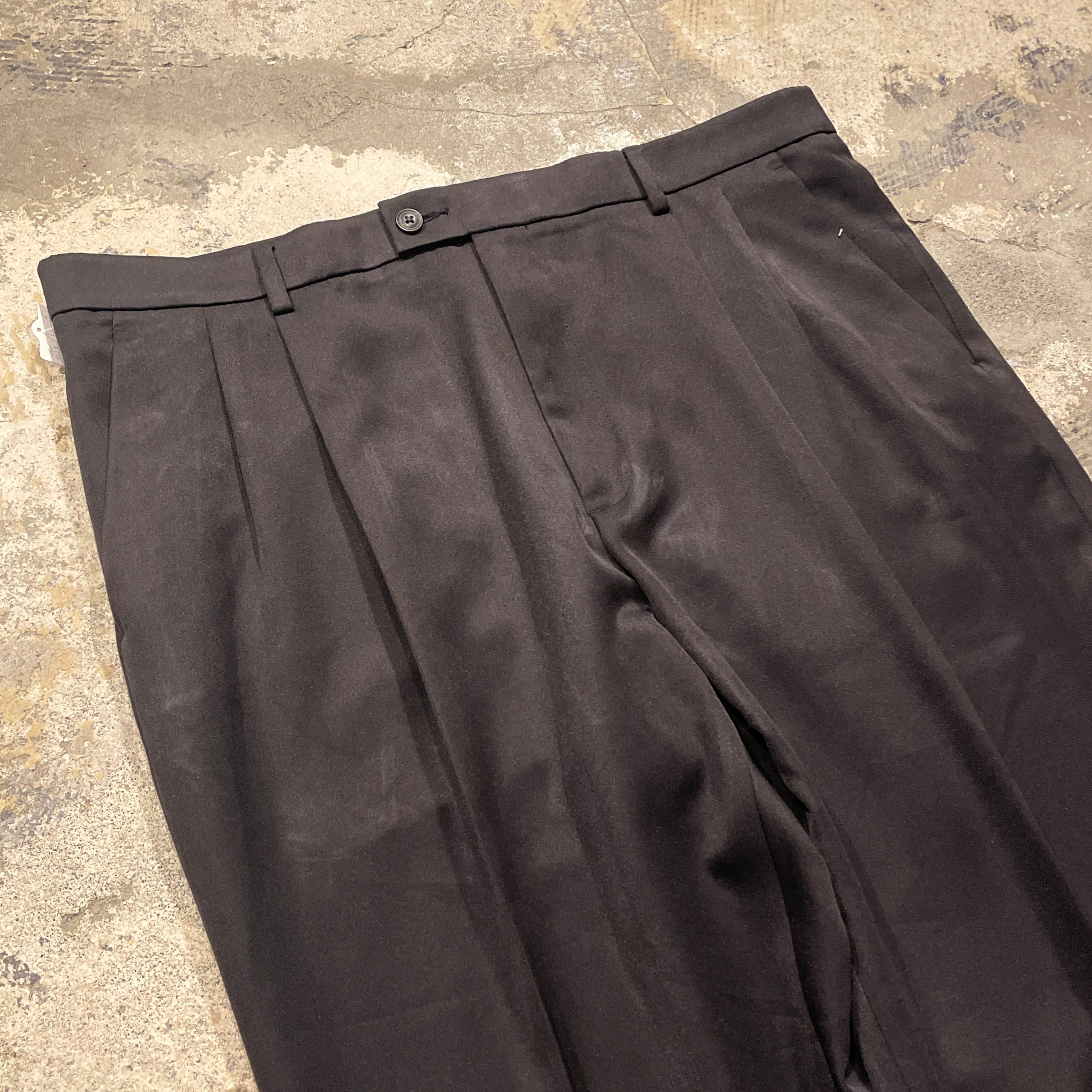 【36×30】00's PERRY ELLIS 2Tuck Slacks Black