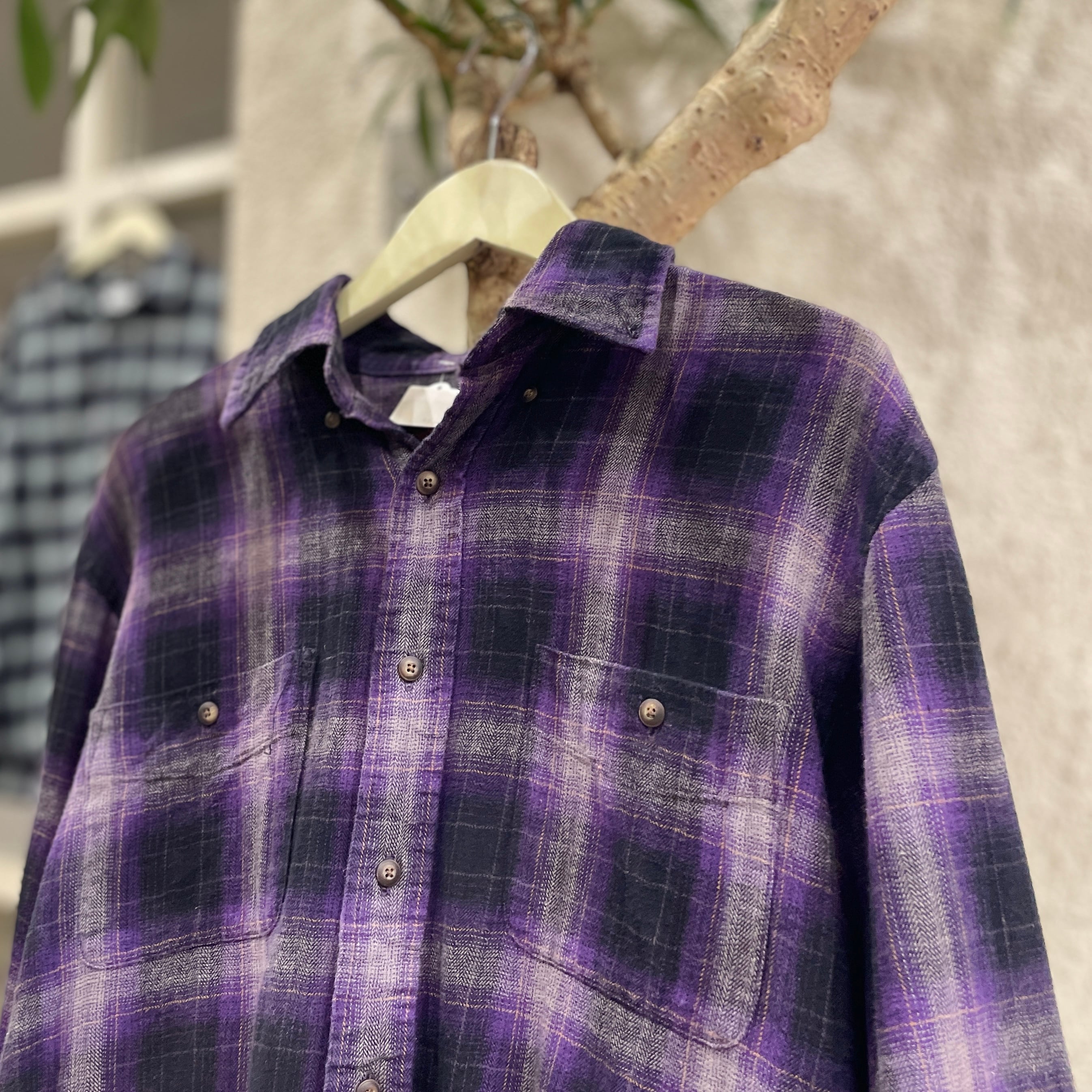 【紫ノ極】90's~ GH BASS Cotton Ombre Check Shirt "SHADOW PURPLE"