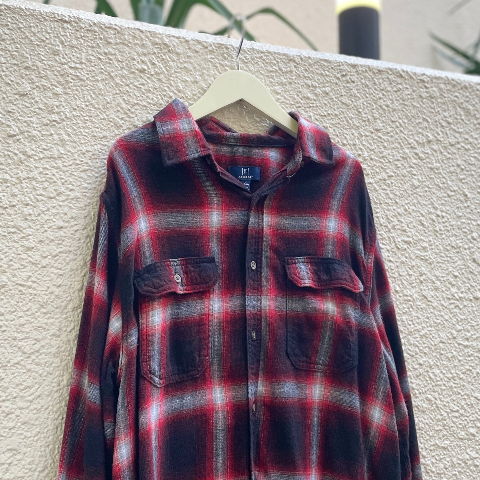 【赤黒ノ極】00's GEORGE Ombre Check Cotton Shirt L/s "SHADOW RED"