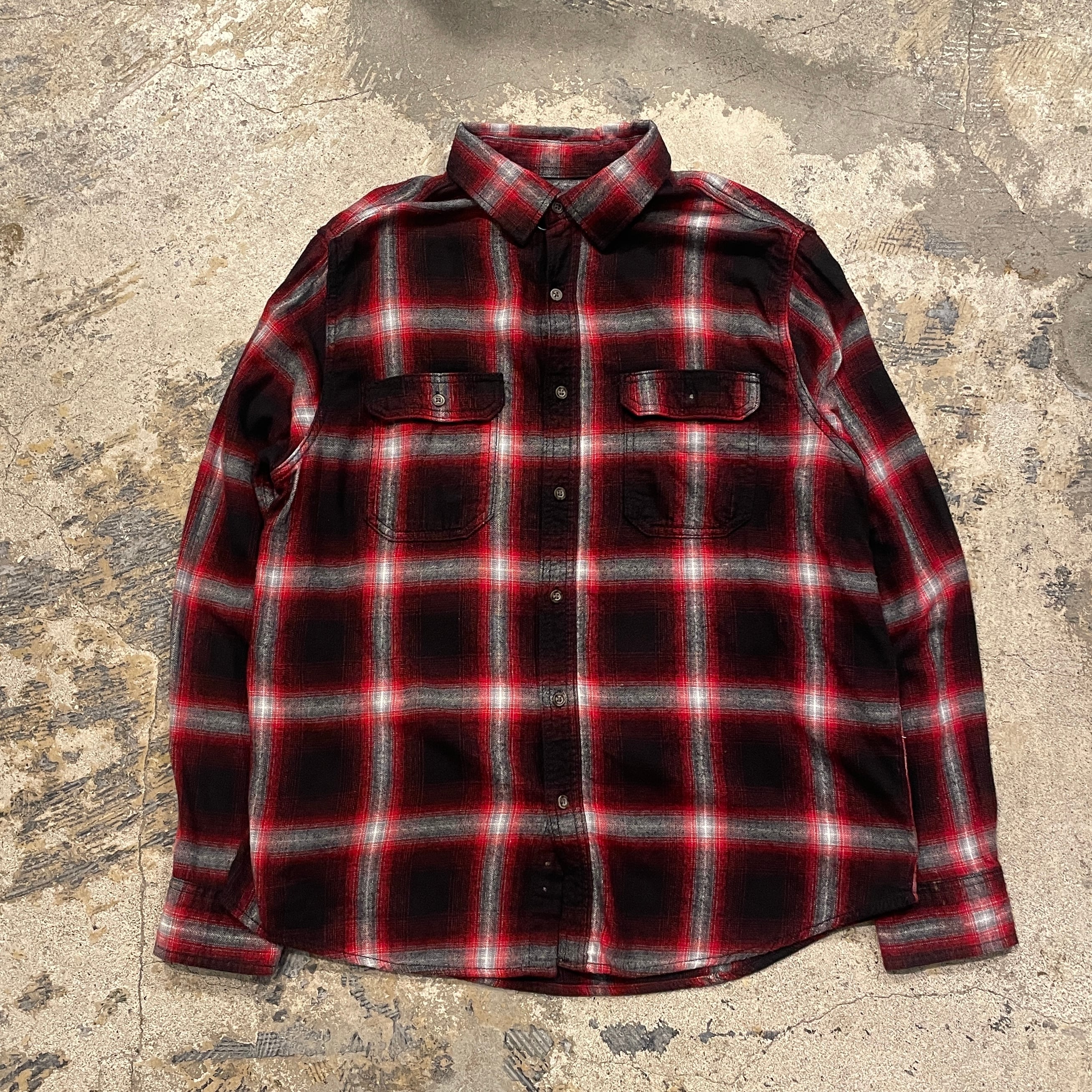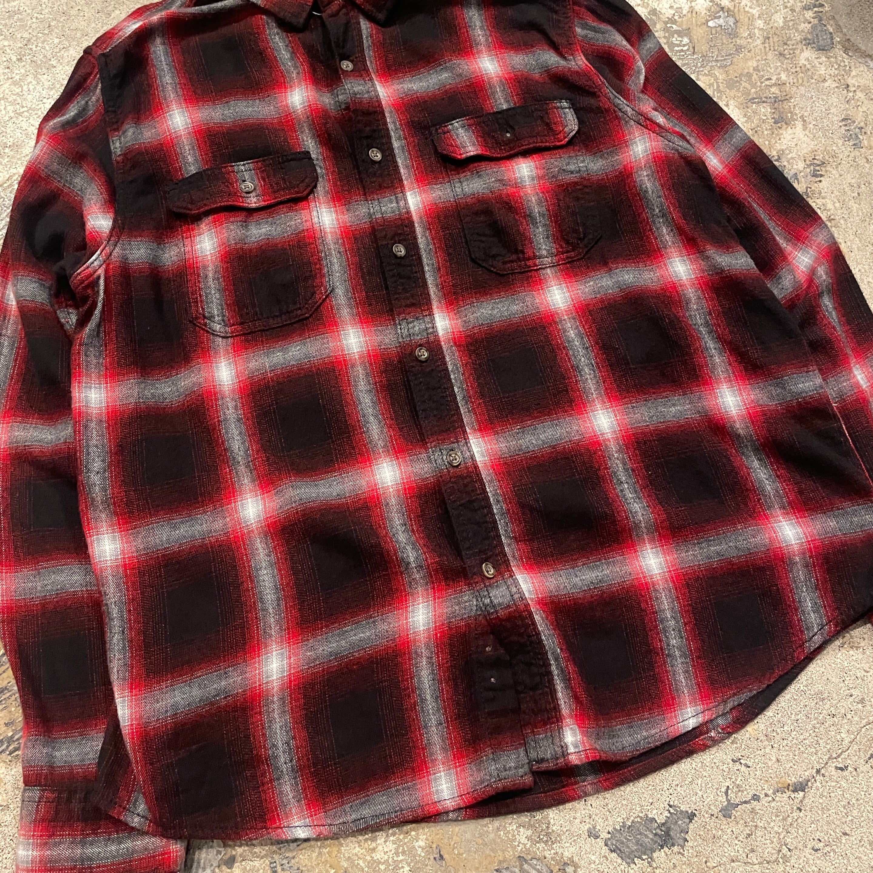 【赤黒オンブレ】00's GEORGE Ombre Check Cotton Shirt L/s "SHADOW RED"