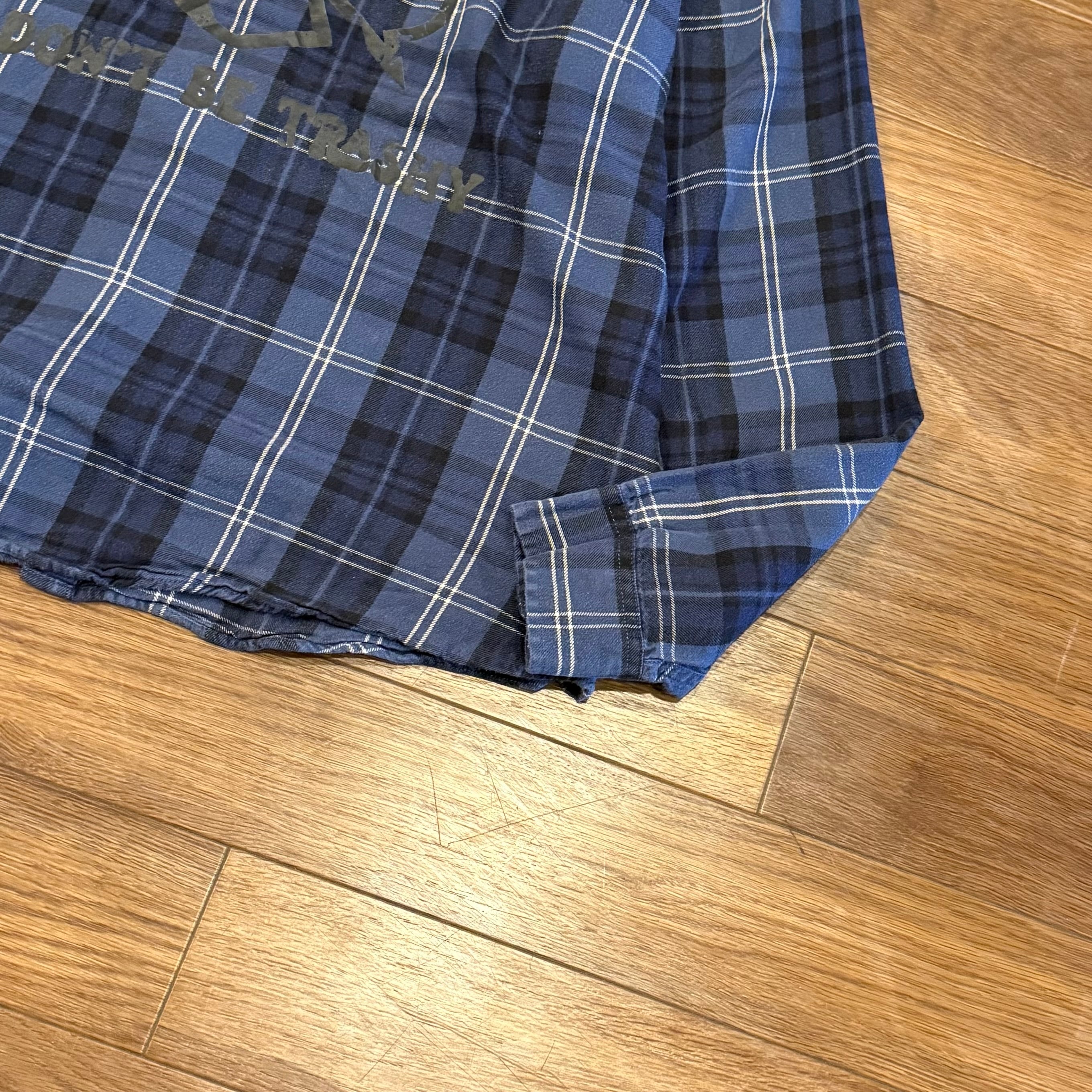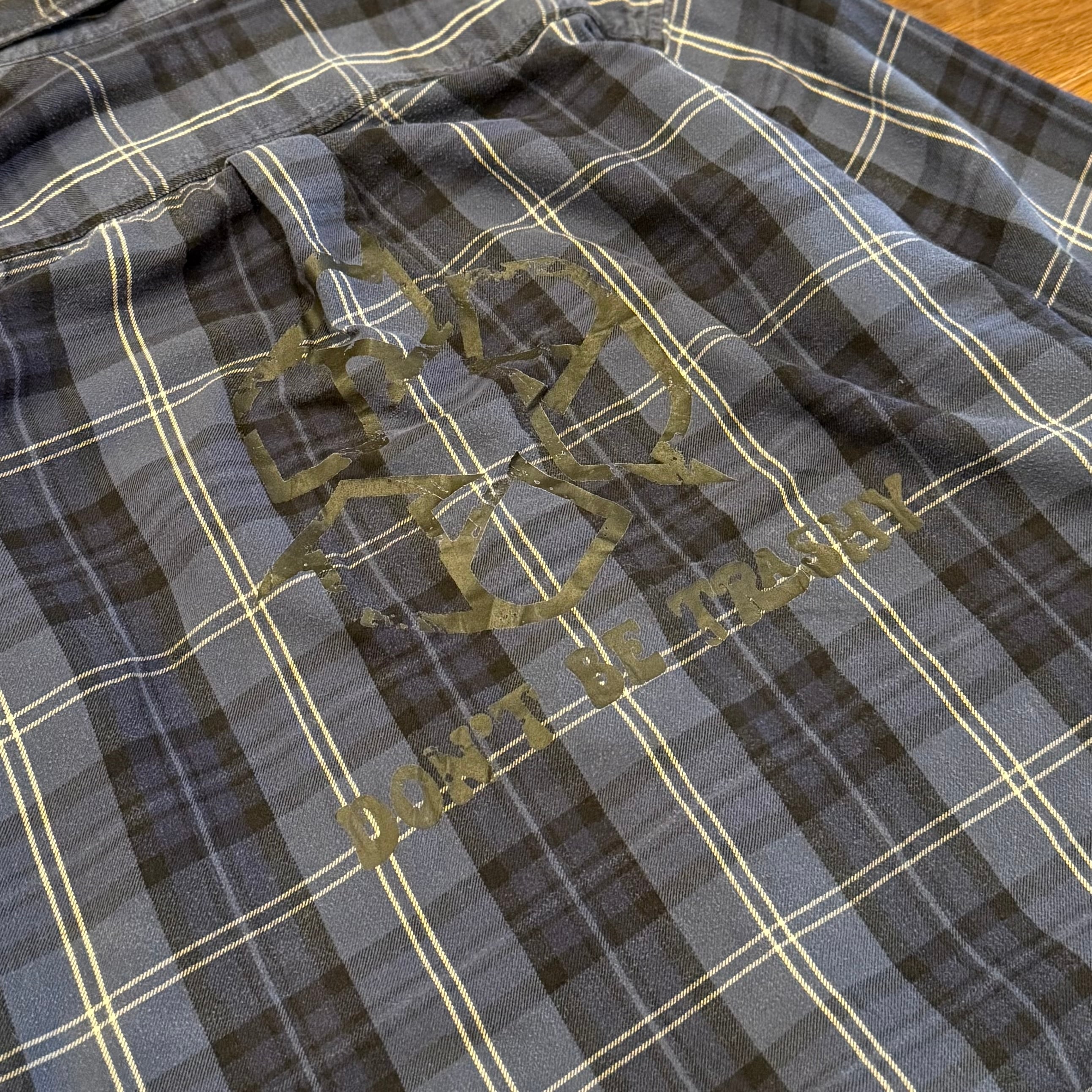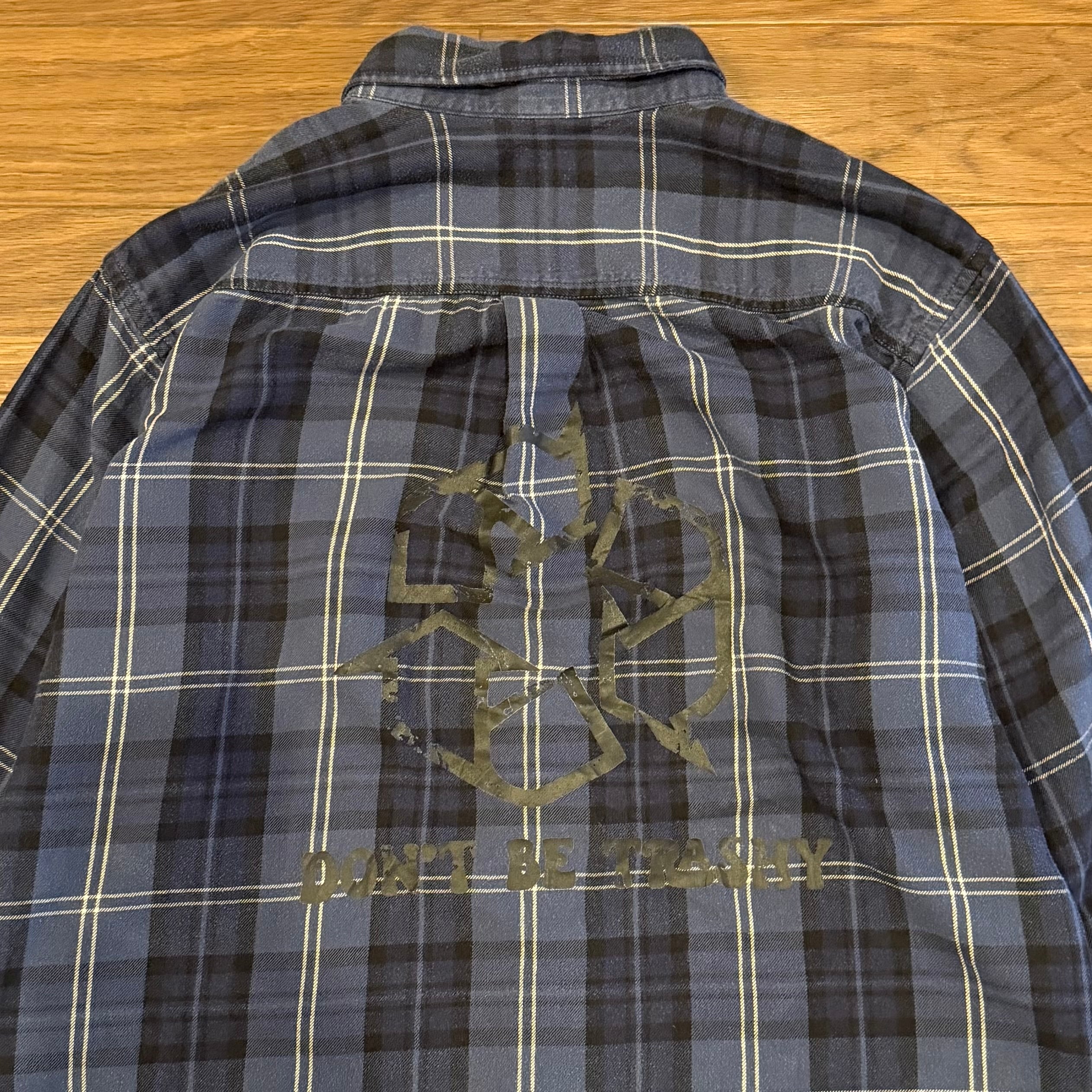 メッセージ性のあるバックデザインが特徴のネルシャツ
