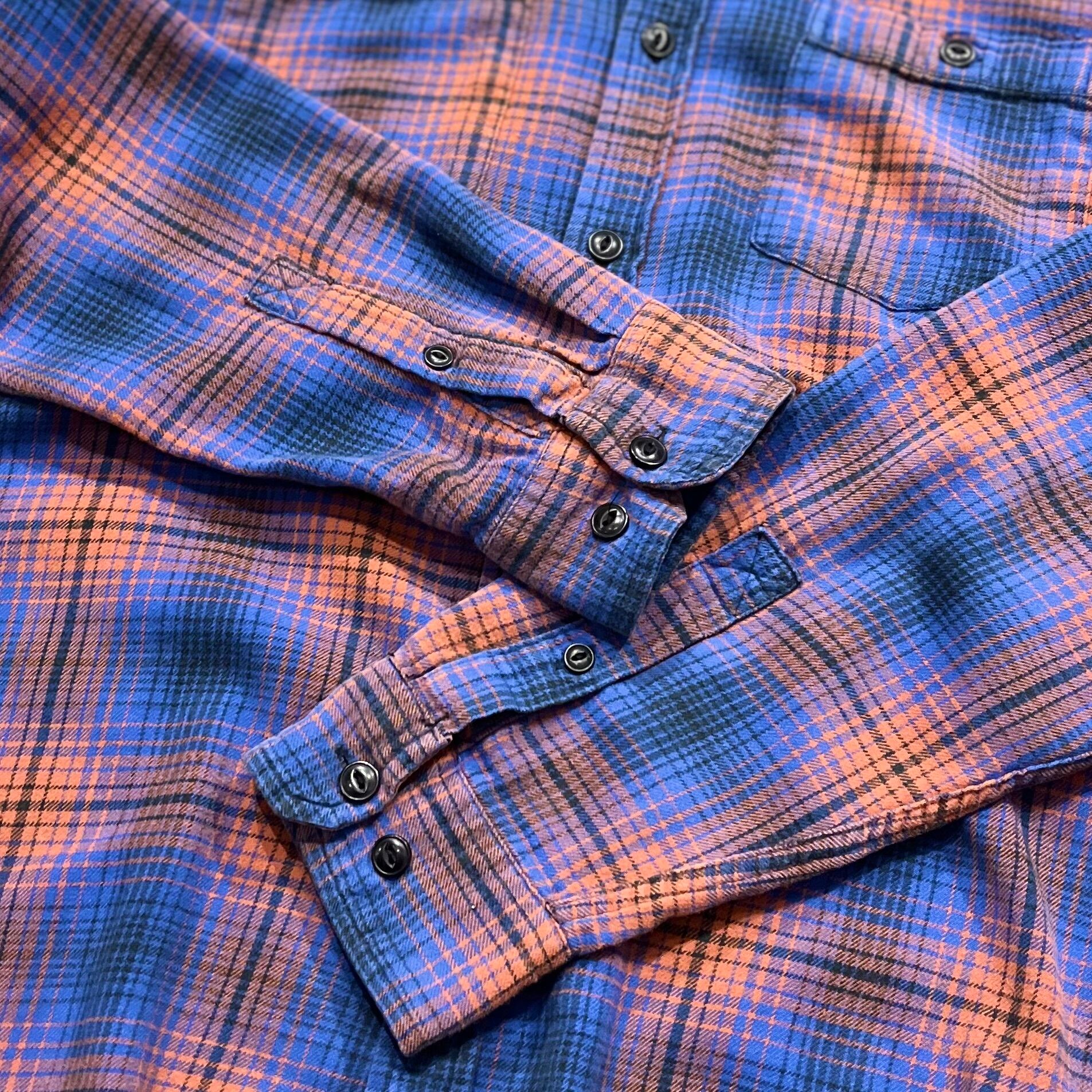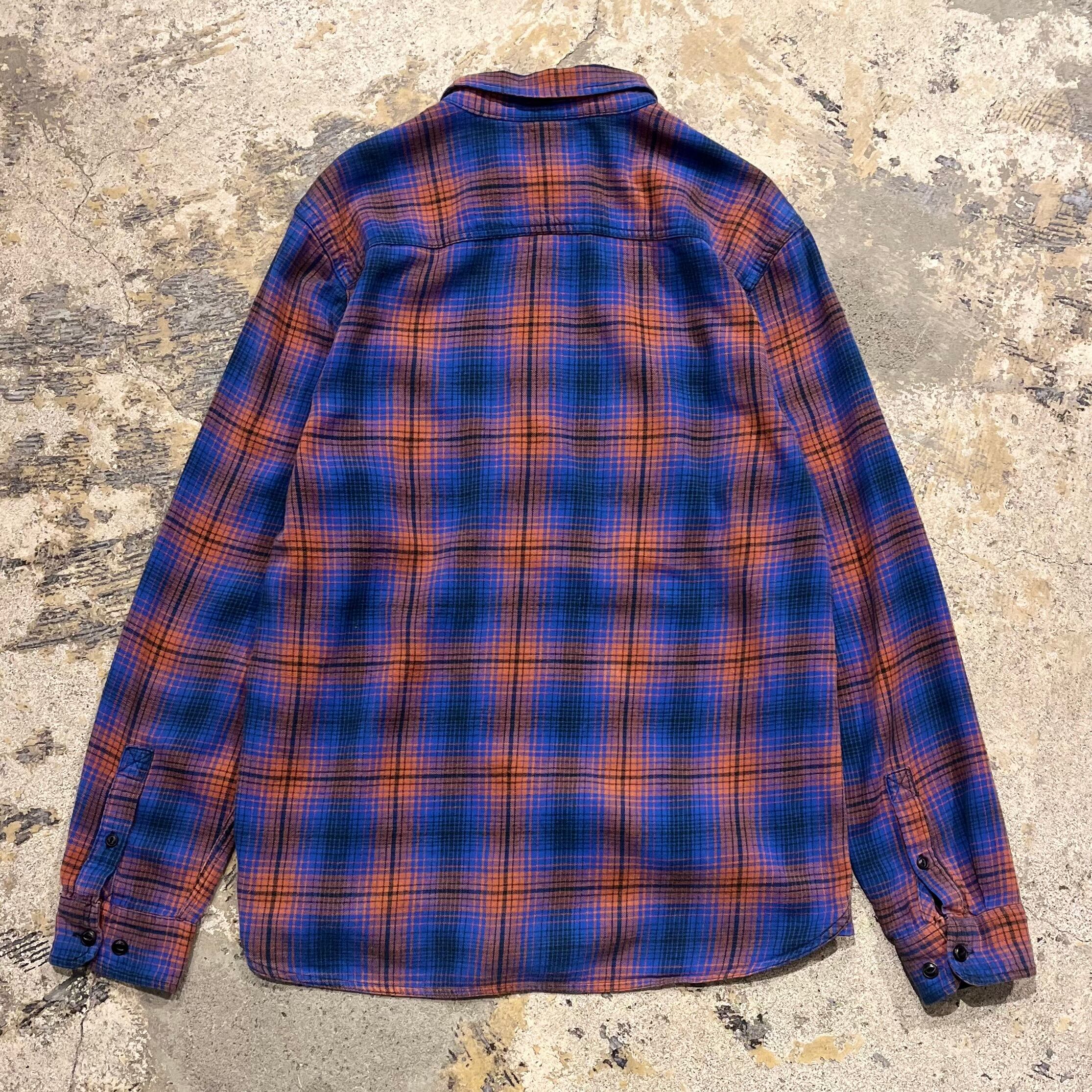 【マチ付き珍色】00's STAPLEFORD Ombre Check Flannel Shirt