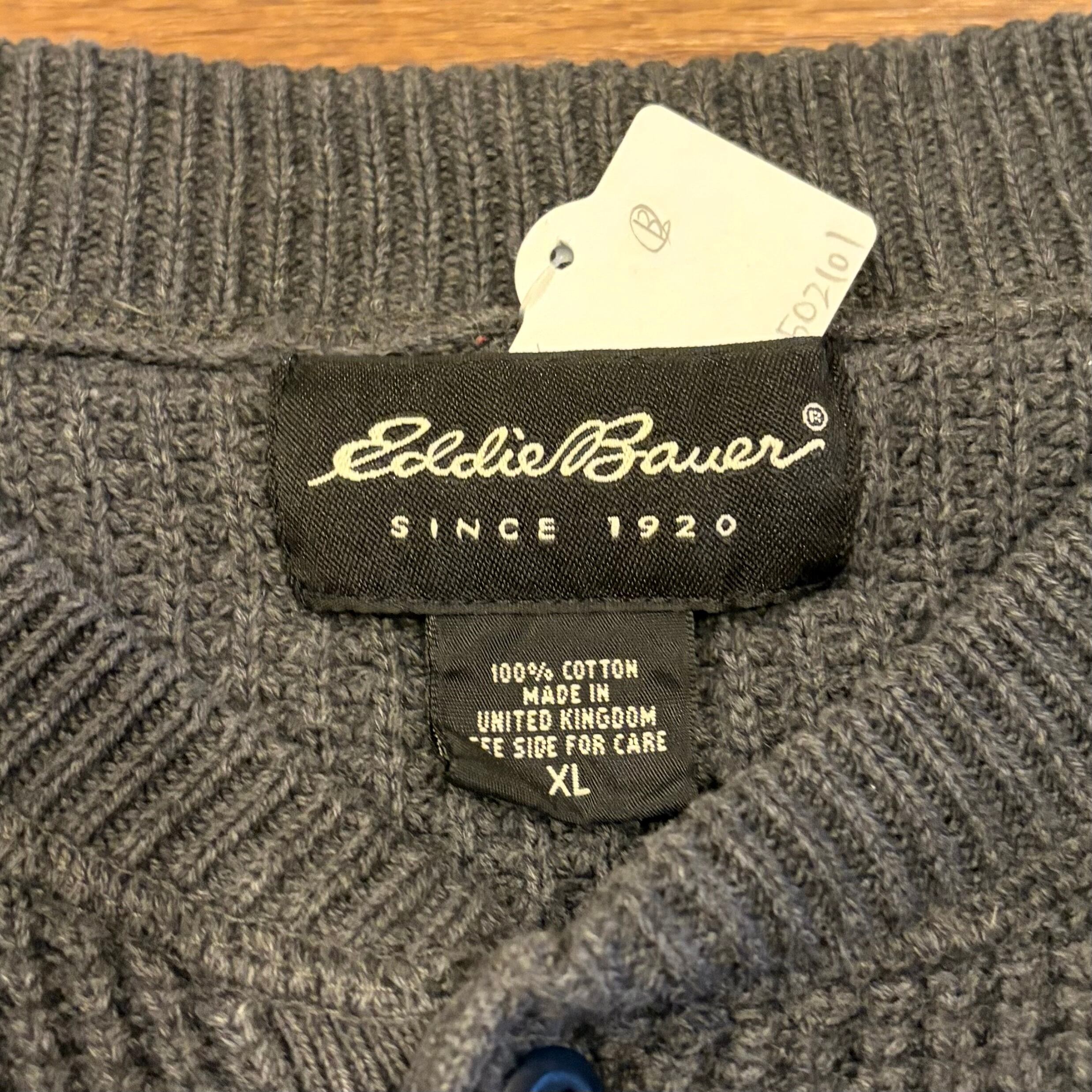 【ワッフル生地、XL】00's Eddie Bauer Cotton Knit Sweater