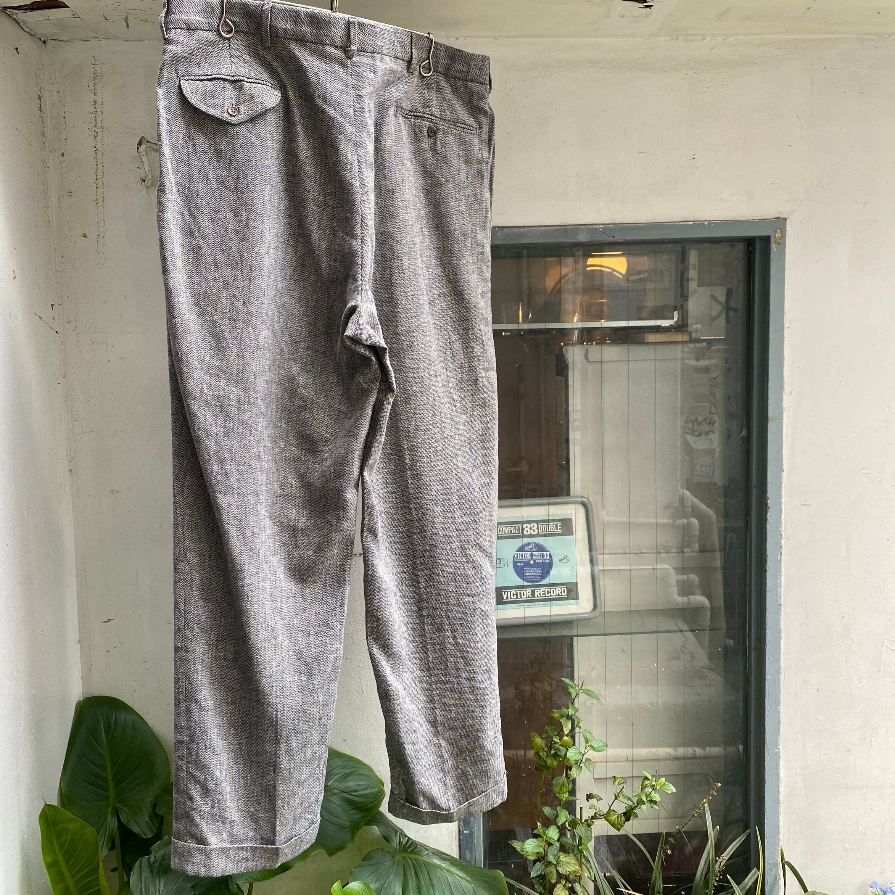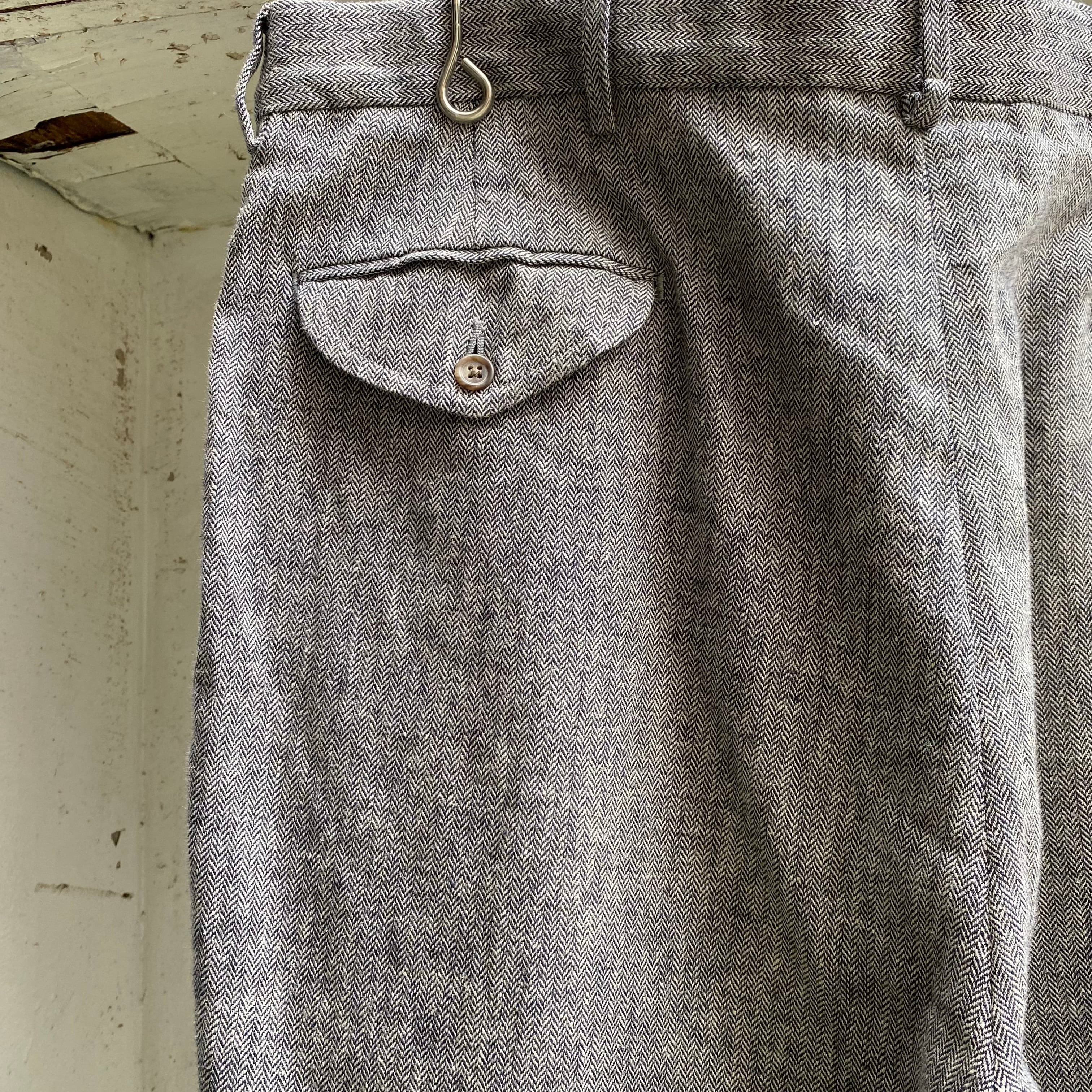 ヘリンボーン織りのスラックス。