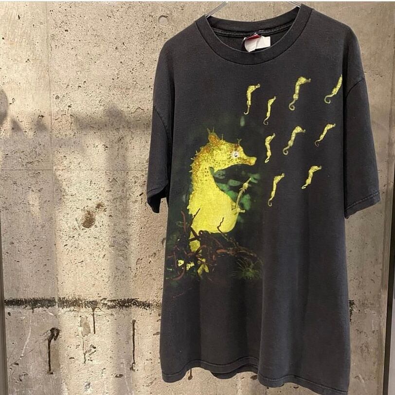 NIRVANAのボーカル、カートコバーンの遺作となった「IN UTERO」収録の「all apologies」のシングルジャケットに描かれていたSeahorseがデザインされたTシャツになります。