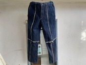 解れ加工が入ったドッキングデニムパンツ☺︎