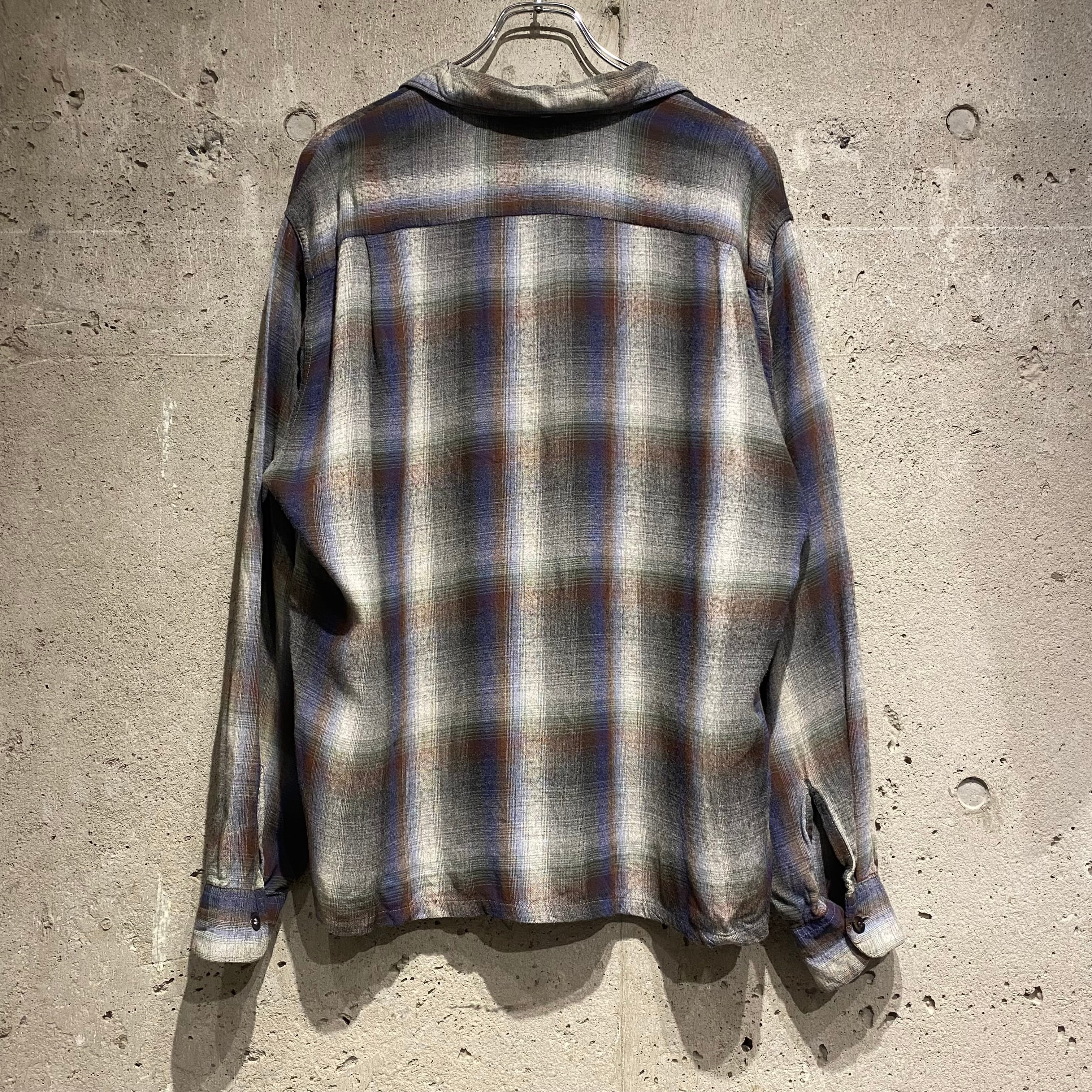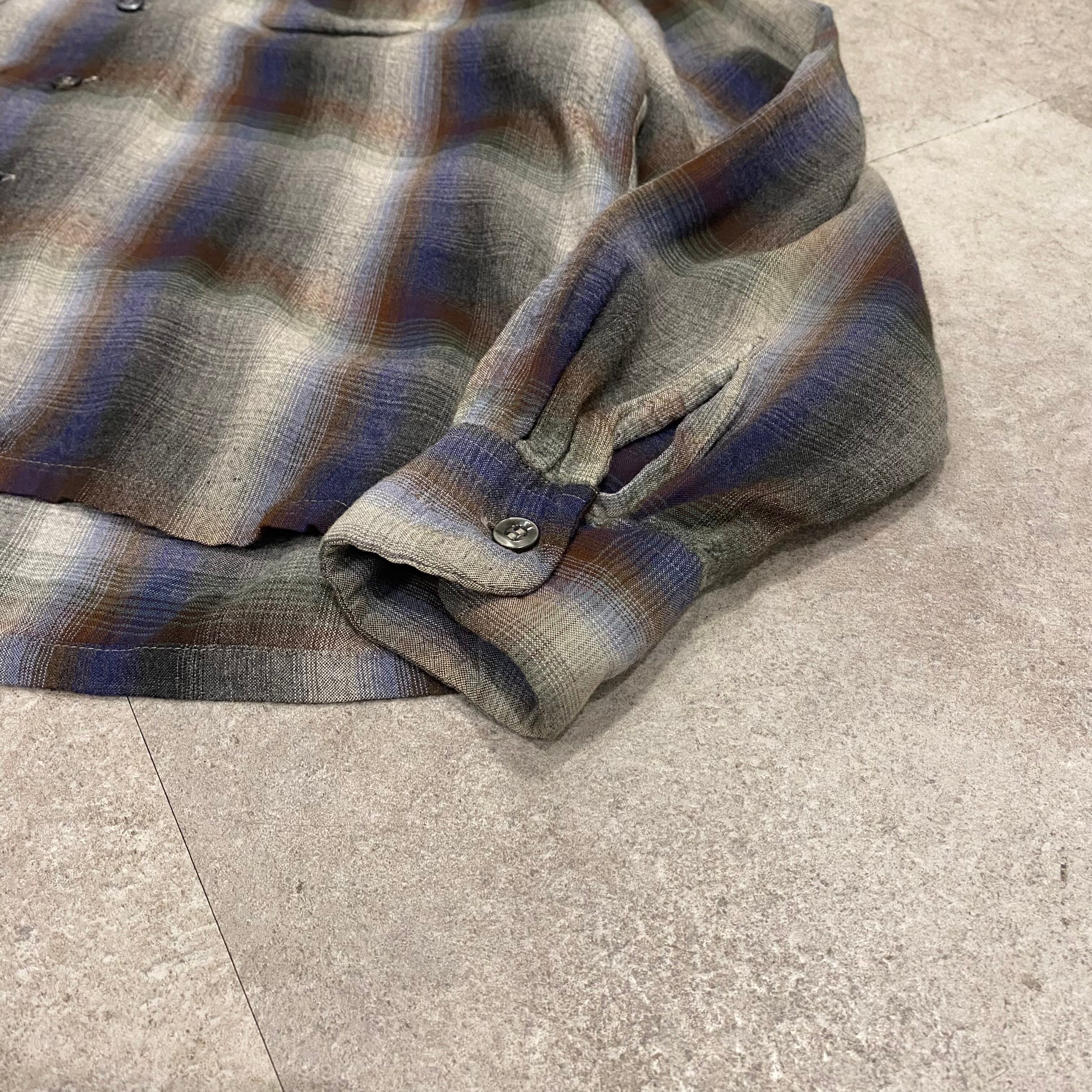 【Lサイズ】60’s Vintage Ombré Check Rayon Shirt “好配色”